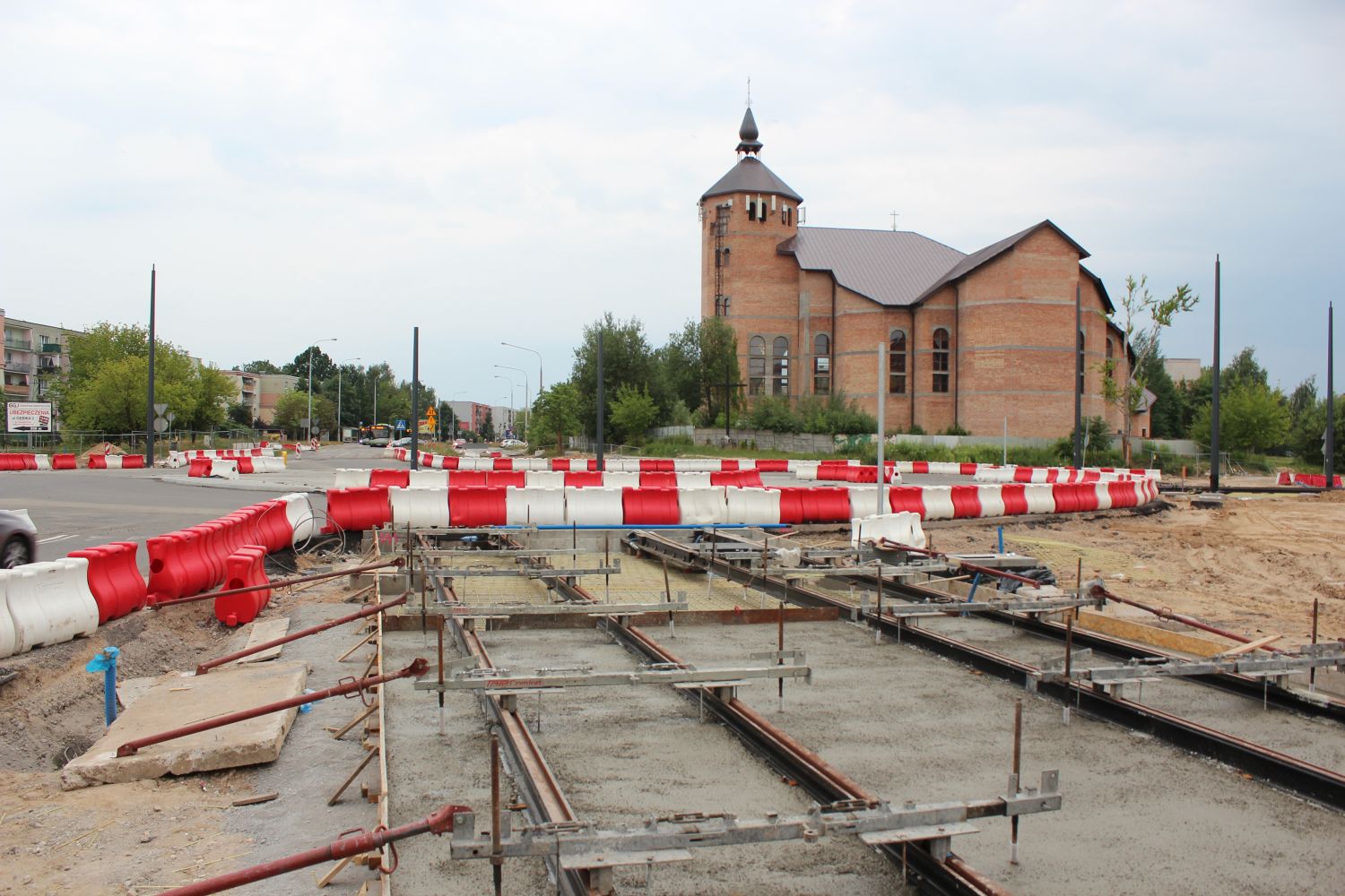 Budowa linii tramwajowej w ulicy Krasickiego, w pobliżu skrzyżowania z ulicą Wilczyńskiego (5 lipca 2023) © OlsztyńskieTramwaje.pl