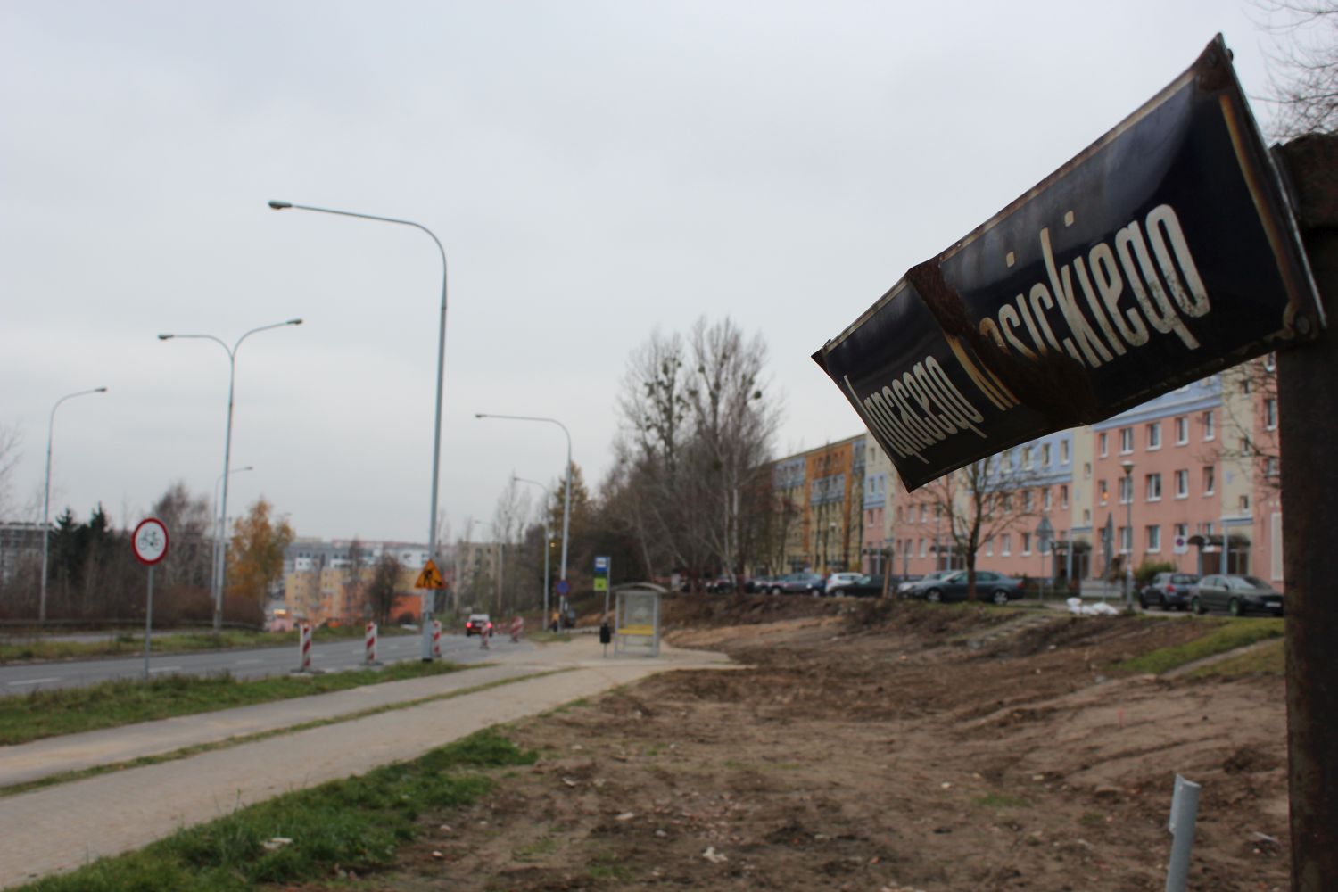 Budowa linii tramwajowej w ulicy Krasickiego, w pobliżu skrzyżowania z ulicą Wańkowicza (14 listopada 2021) © OlsztyńskieTramwaje.pl