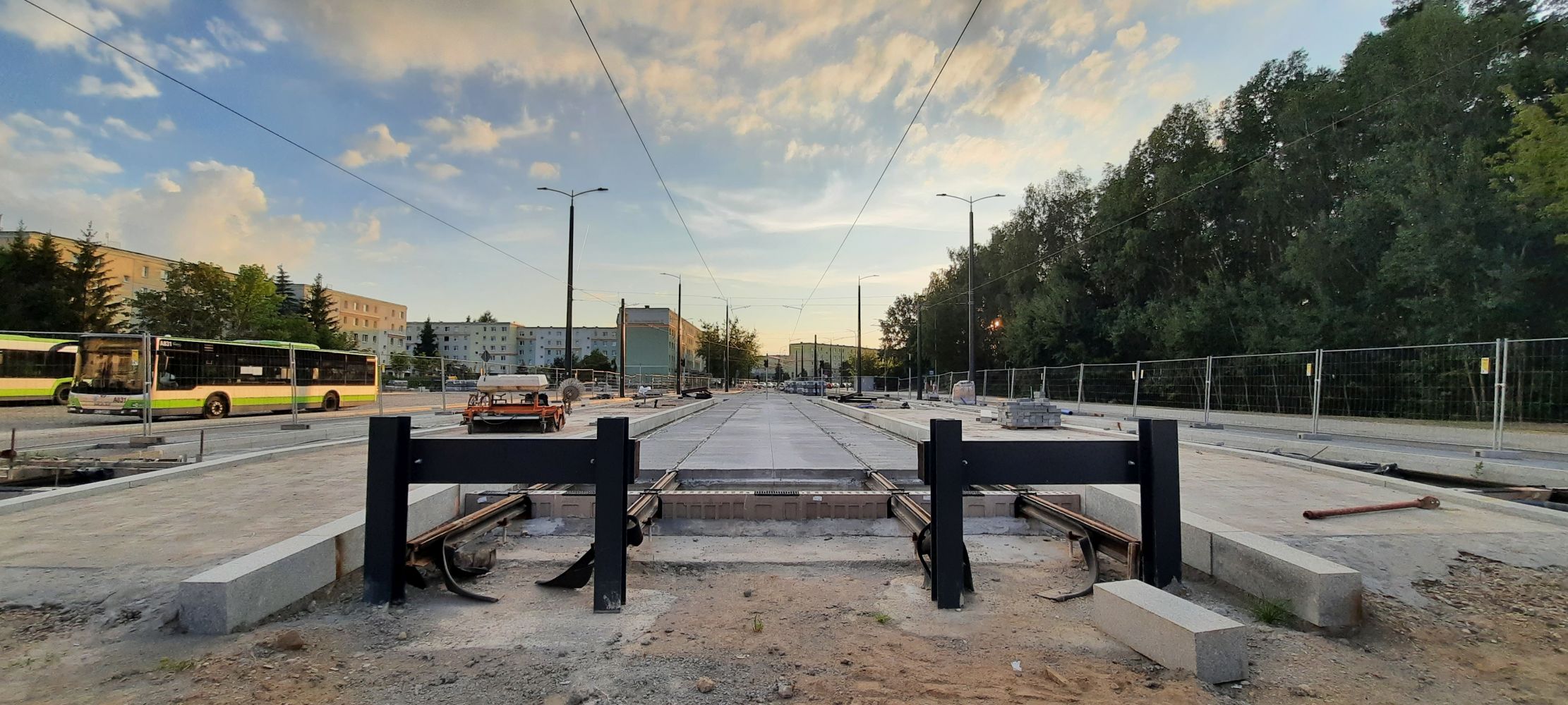 Budowa linii tramwajowej w ulicy Wilczyńskiego – przystanek końcowy Pieczewo (13 sierpnia 2023) © OlsztyńskieTramwaje.pl