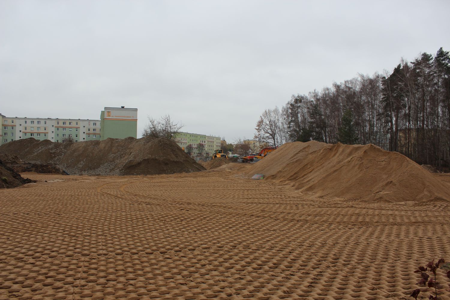 Budowa linii tramwajowej w ulicy Wilczyńskiego, w okolicach przyszłego przystanku końcowego Pieczewo (14 listopada 2021) © OlsztyńskieTramwaje.pl