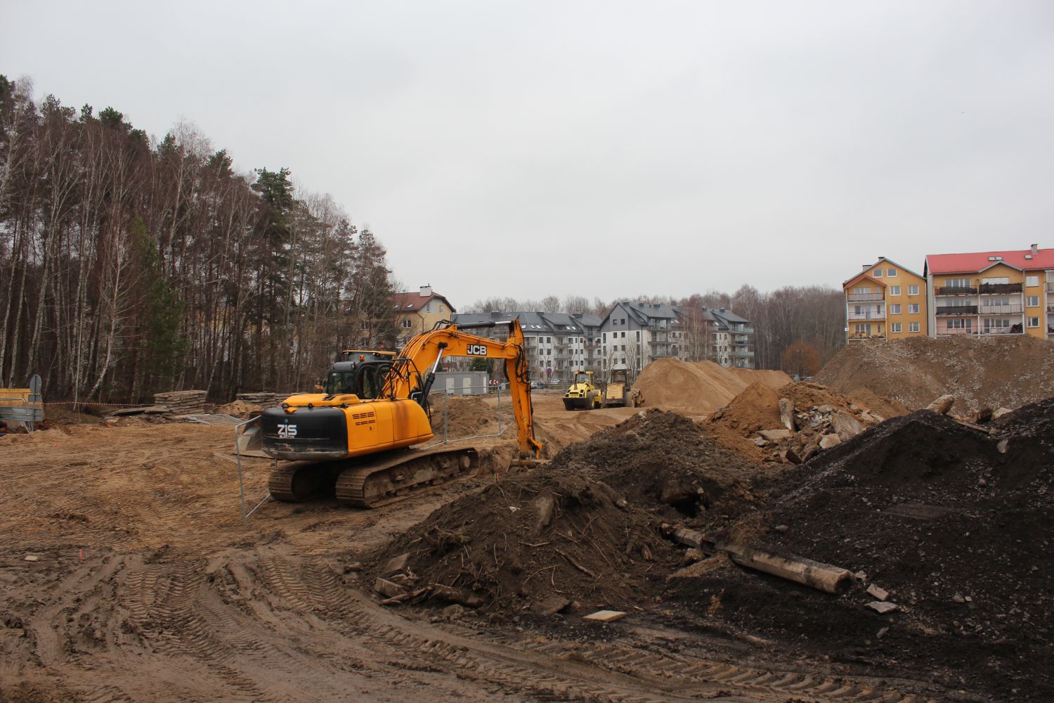 Budowa linii tramwajowej w ulicy Wilczyńskiego, w okolicach przyszłego przystanku końcowego Pieczewo (14 listopada 2021) © OlsztyńskieTramwaje.pl