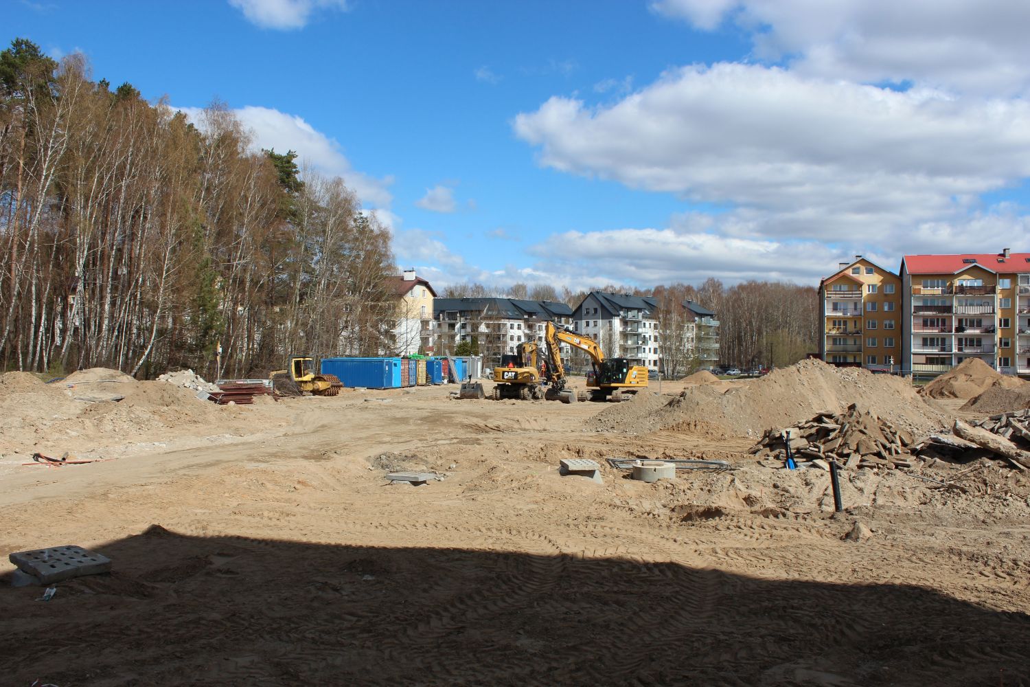 Budowa linii tramwajowej w ulicy Wilczyńskiego, w okolicach przyszłego przystanku końcowego Pieczewo (16 kwietnia 2022) © OlsztyńskieTramwaje.pl