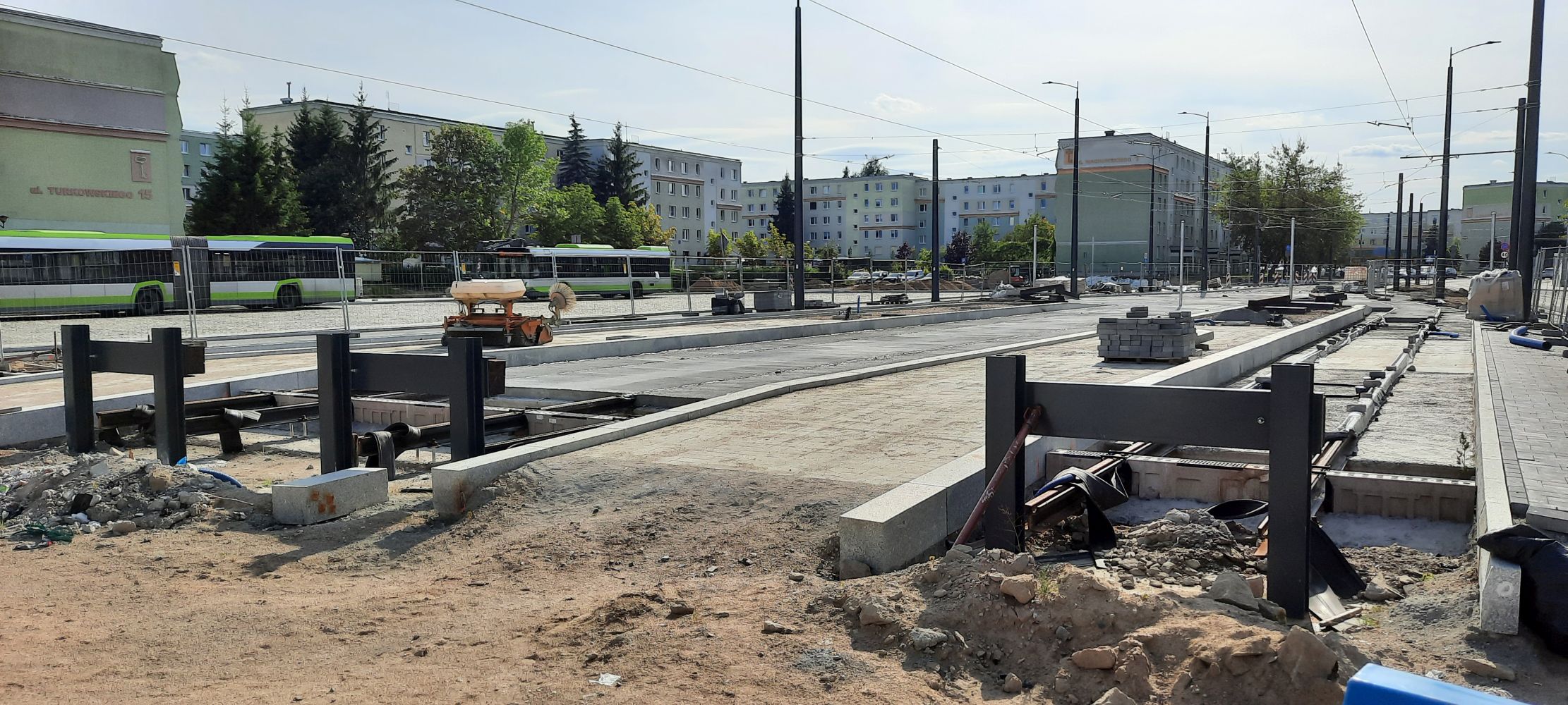 Budowa linii tramwajowej w ulicy Wilczyńskiego – przystanek końcowy Pieczewo (29 lipca 2023)