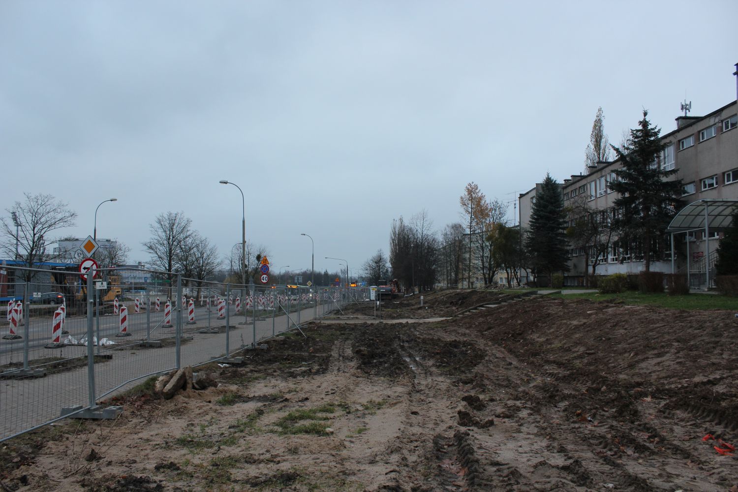 Budowa linii tramwajowej w alei Piłsudskiego, między skrzyżowaniem z ulicami Wyszyńskiego i Leonharda a placem Inwalidów Wojennych (14 listopada 2021) © OlsztyńskieTramwaje.pl