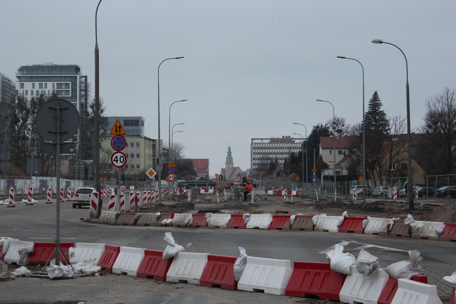 Budowa linii tramwajowej w alei Piłsudskiego, w pobliżu hali Urania (14 listopada 2021) © OlsztyńskieTramwaje.pl