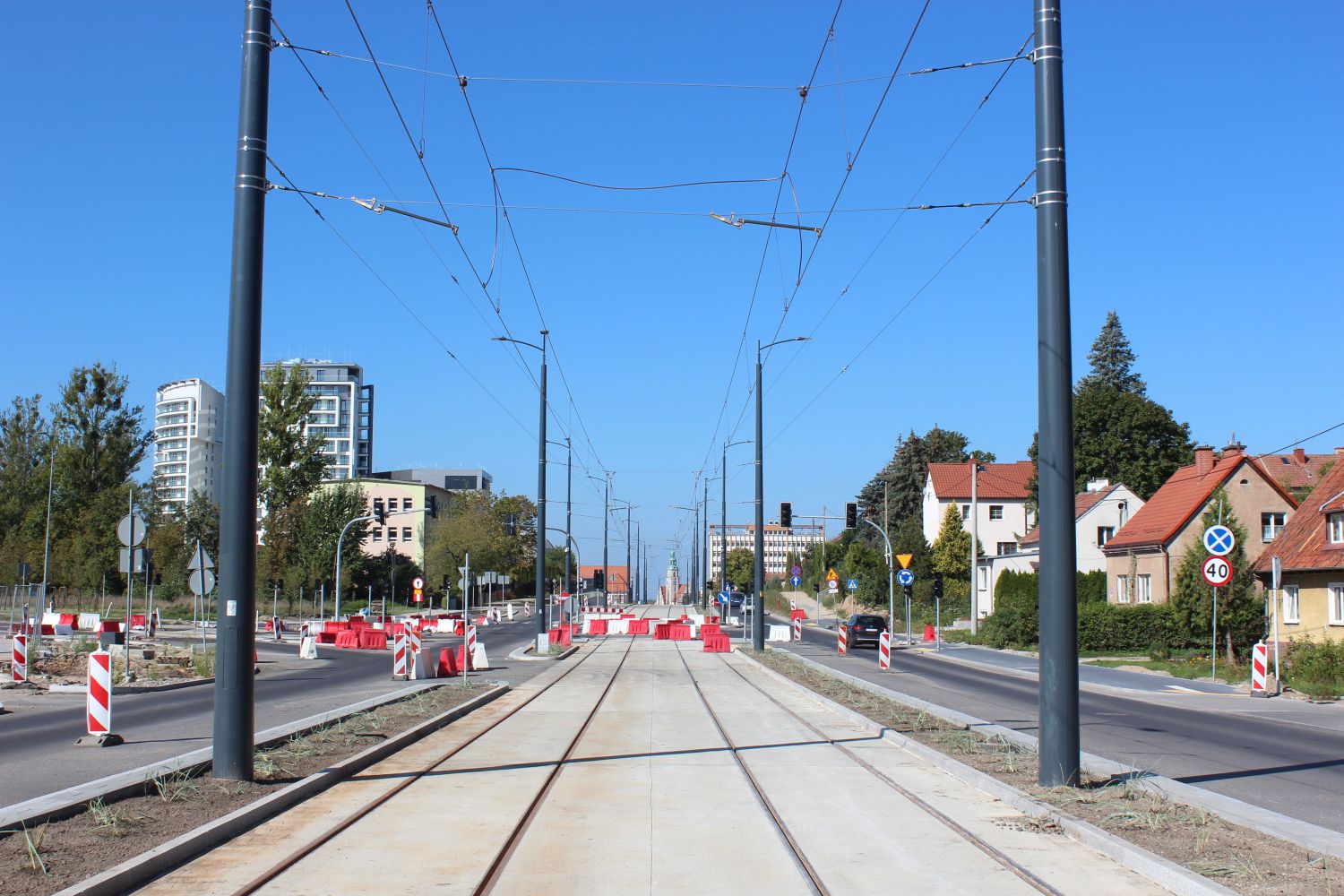 Budowa linii tramwajowej w alei Piłsudskiego, w pobliżu skrzyżowania z ulicą Obiegową (17 września 2023) © OlsztyńskieTramwaje.pl