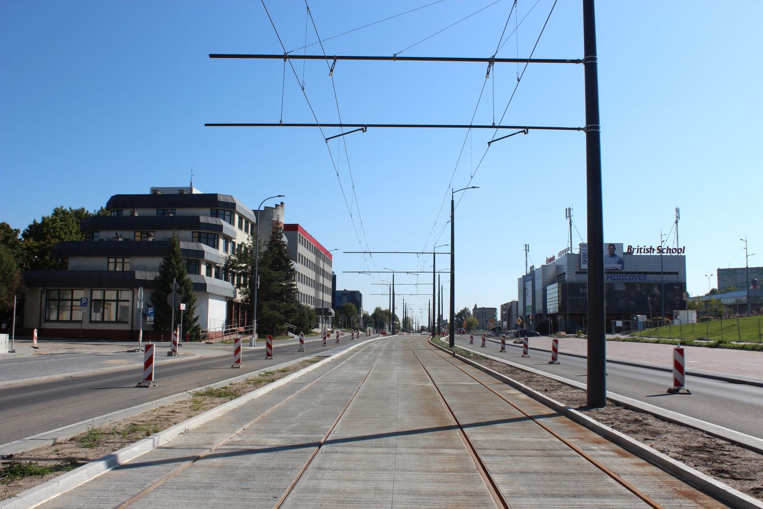 Budowa linii tramwajowej w alei Piłsudskiego, na wysokości hali Urania (17 września 2023) © OlsztyńskieTramwaje.pl