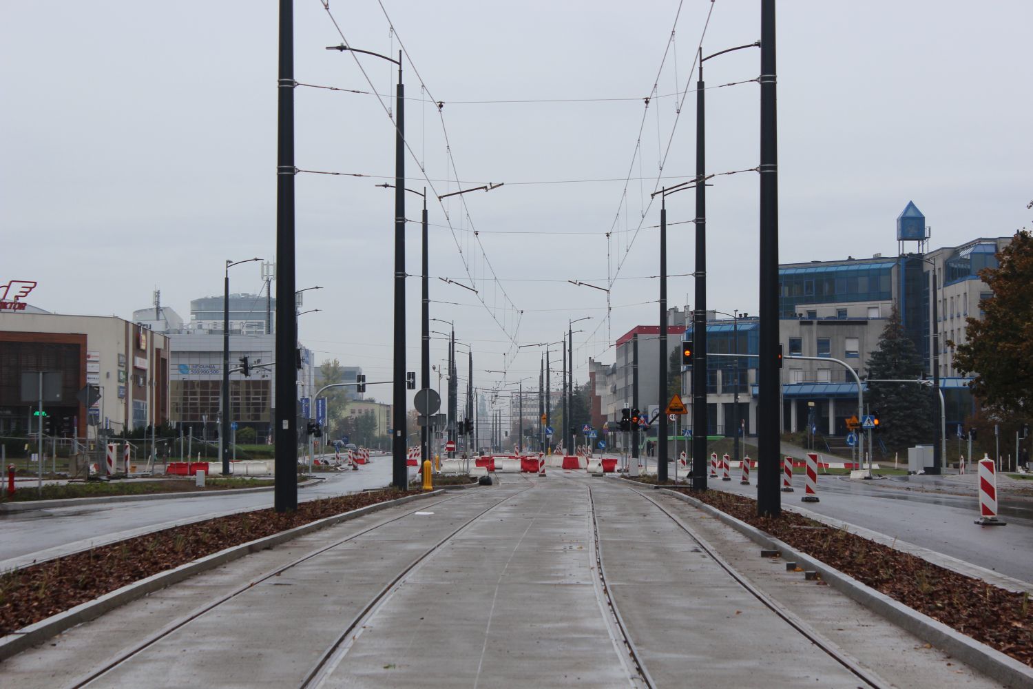 Budowa linii tramwajowej w alei Piłsudskiego, w pobliżu placu Inwalidów Wojennych (22 października 2023) © OlsztyńskieTramwaje.pl