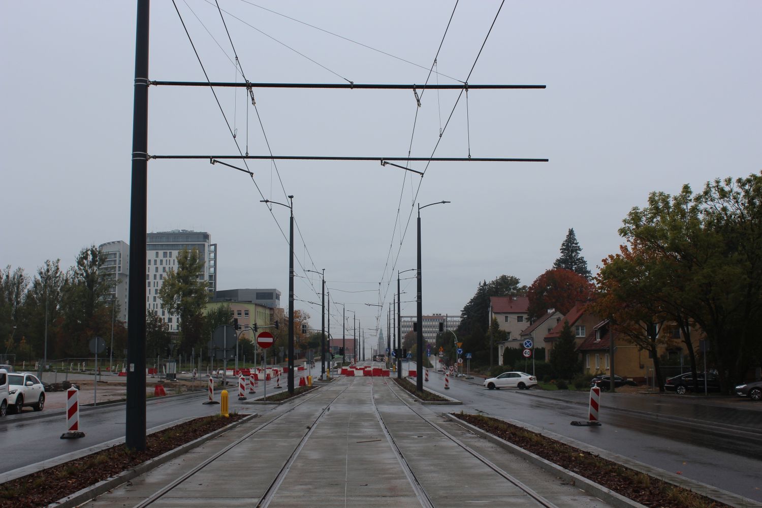 Budowa linii tramwajowej w alei Piłsudskiego, na wysokości hali Urania (22 października 2023) © OlsztyńskieTramwaje.pl