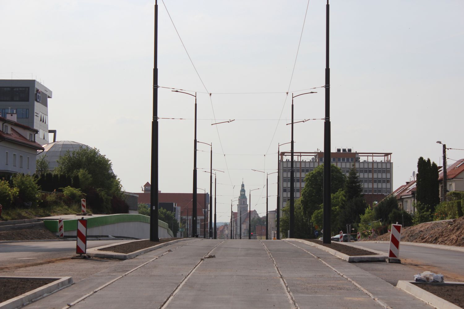 Budowa linii tramwajowej w alei Piłsudskiego, w pobliżu placu Daszyńskiego (5 lipca 2023) © OlsztyńskieTramwaje.pl