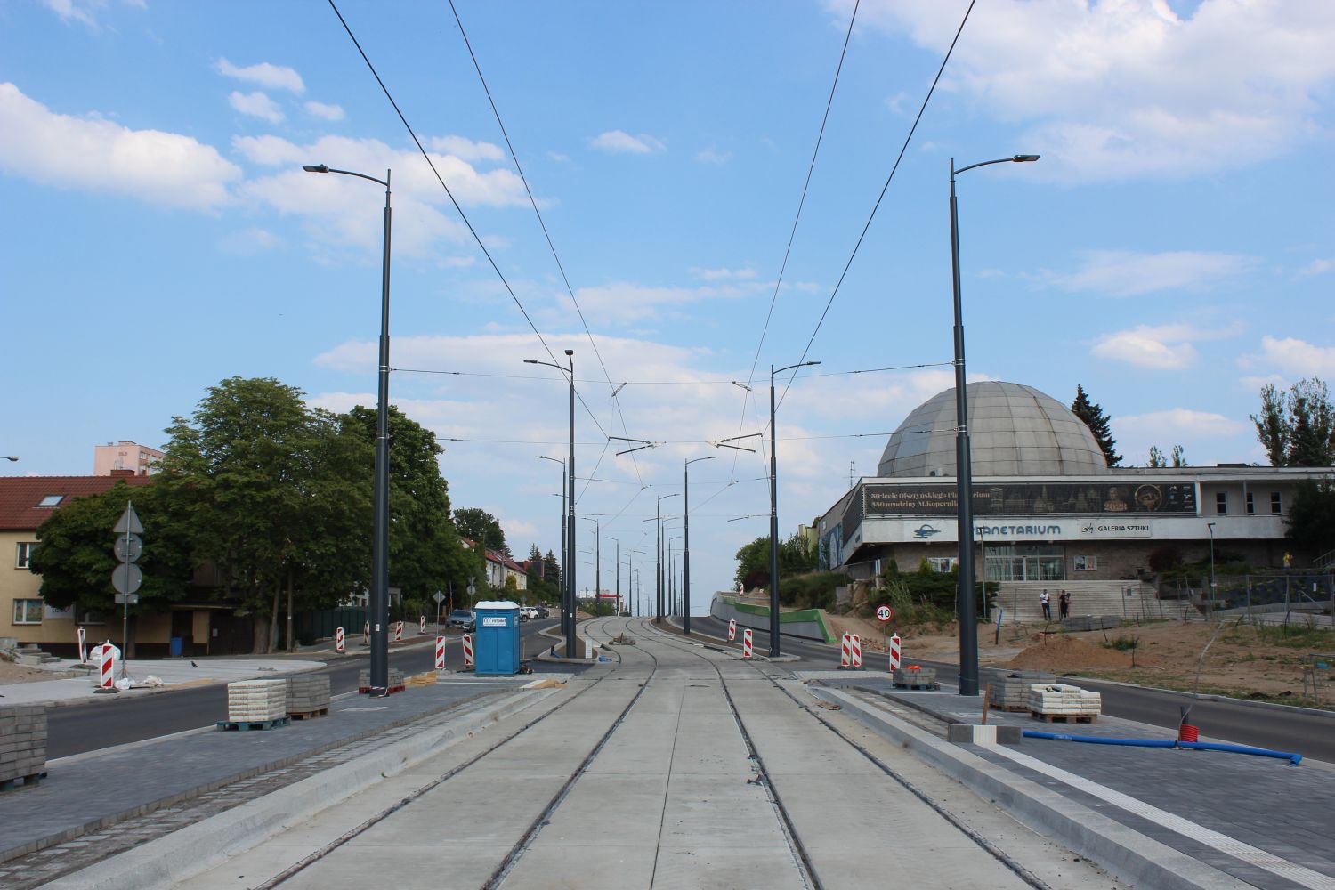 Budowa linii tramwajowej w alei Piłsudskiego – przystanek Planetarium (5 lipca 2023) © OlsztyńskieTramwaje.pl