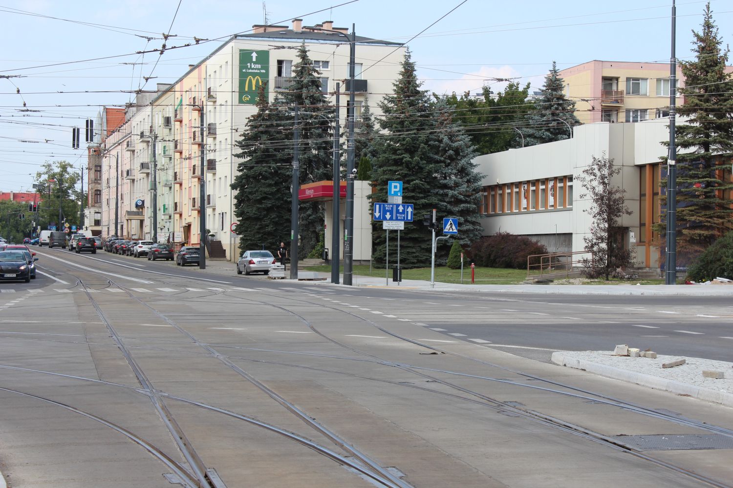 Budowa linii tramwajowej na skrzyżowaniu alei Piłsudskiego z ulicą Kościuszki (5 lipca 2023) © OlsztyńskieTramwaje.pl