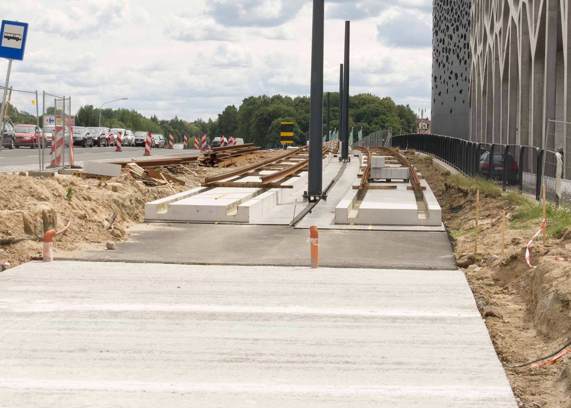 Budowa linii tramwajowej przy alei Sikorskiego (12 lipca 2015) – przystanek Galeria Warmińska Fot. Paweł Bukowski