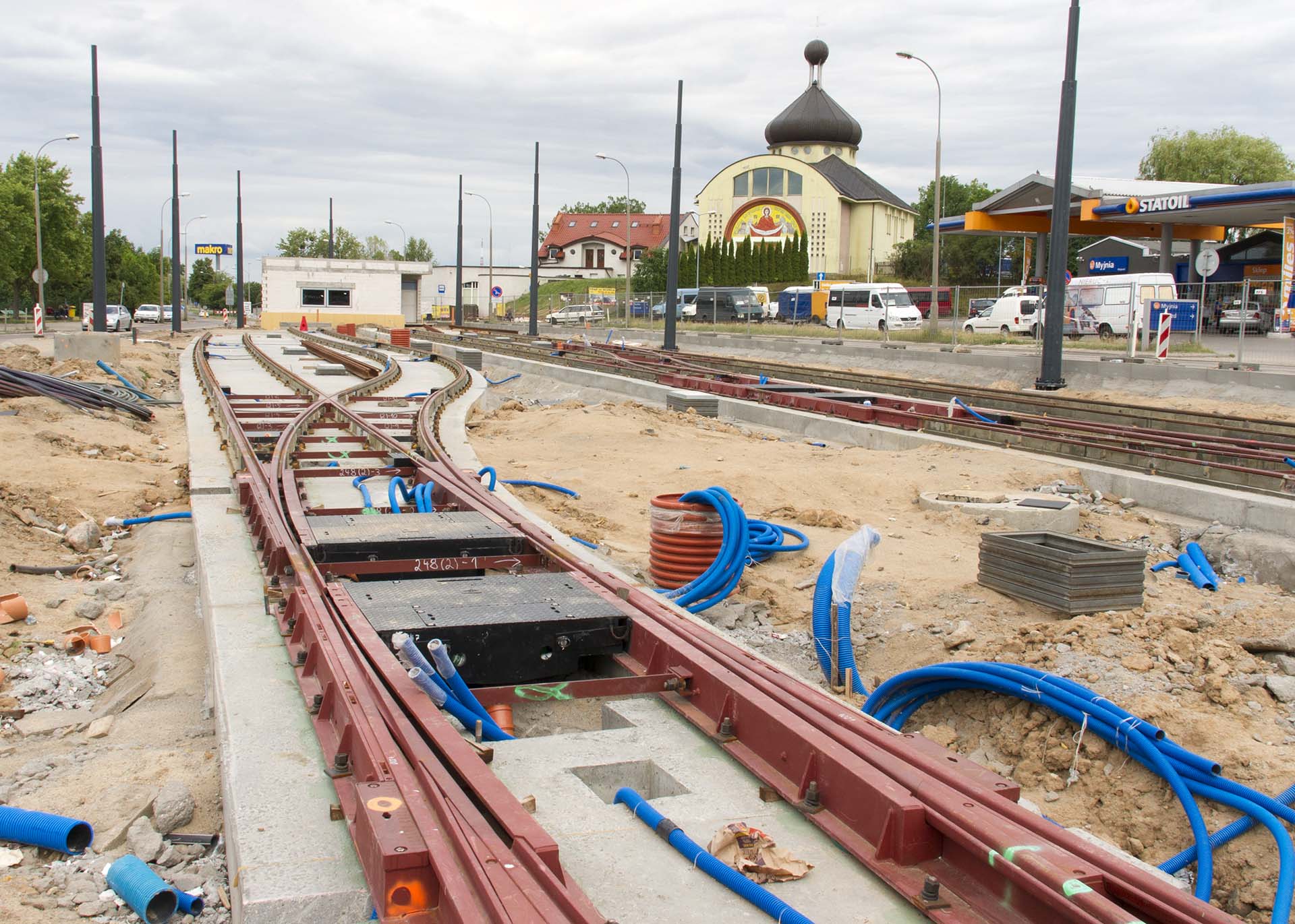 Budowa linii tramwajowej w ulicy Lubelskiej (12 lipca 2015) – tory odstawcze i budynek socjalny dla motorniczych przy przystanku końcowym Dworzec Główny Fot. Paweł Bukowski