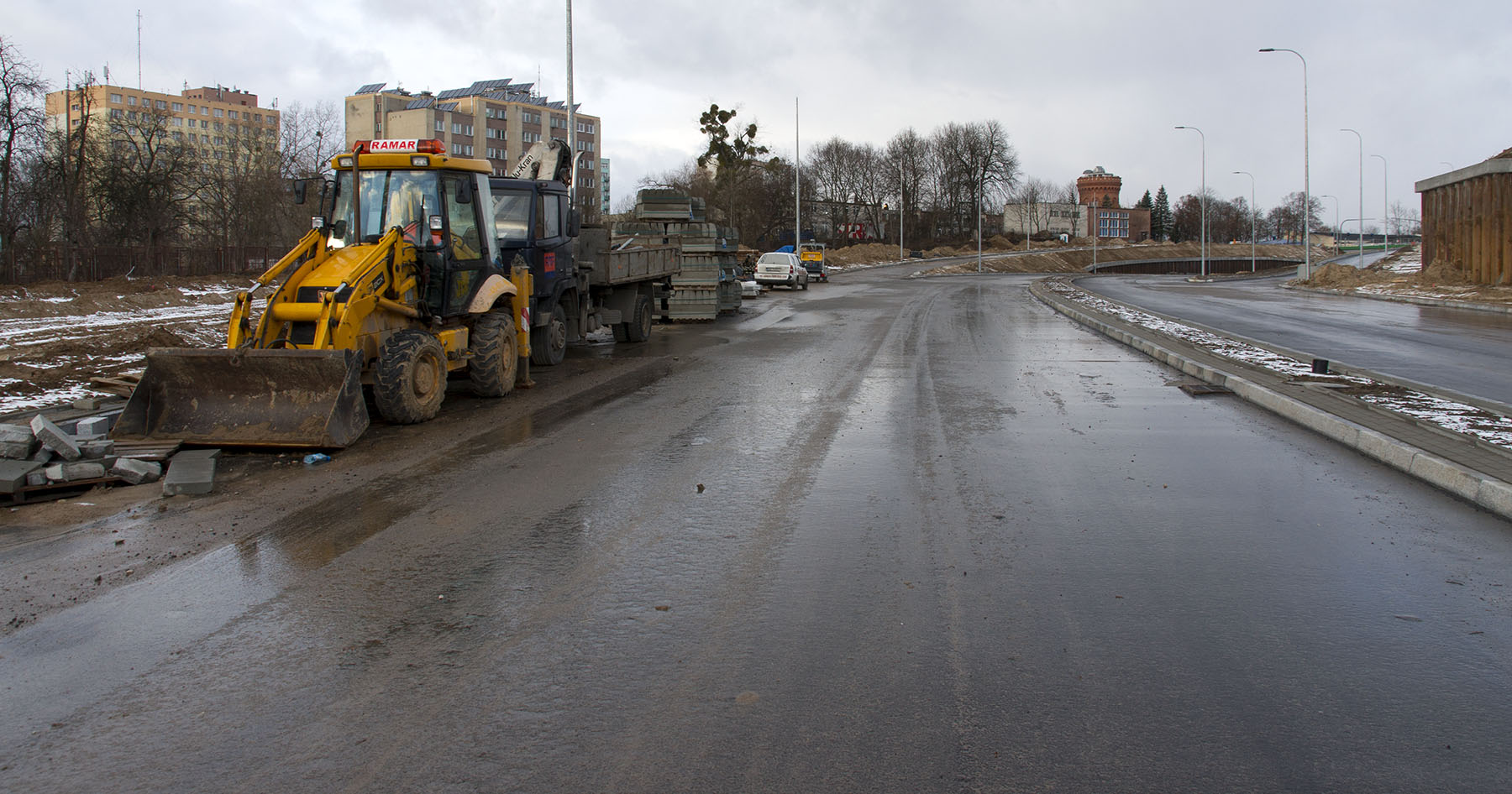 Budowa ulicy Obiegowej (2 stycznia 2015)