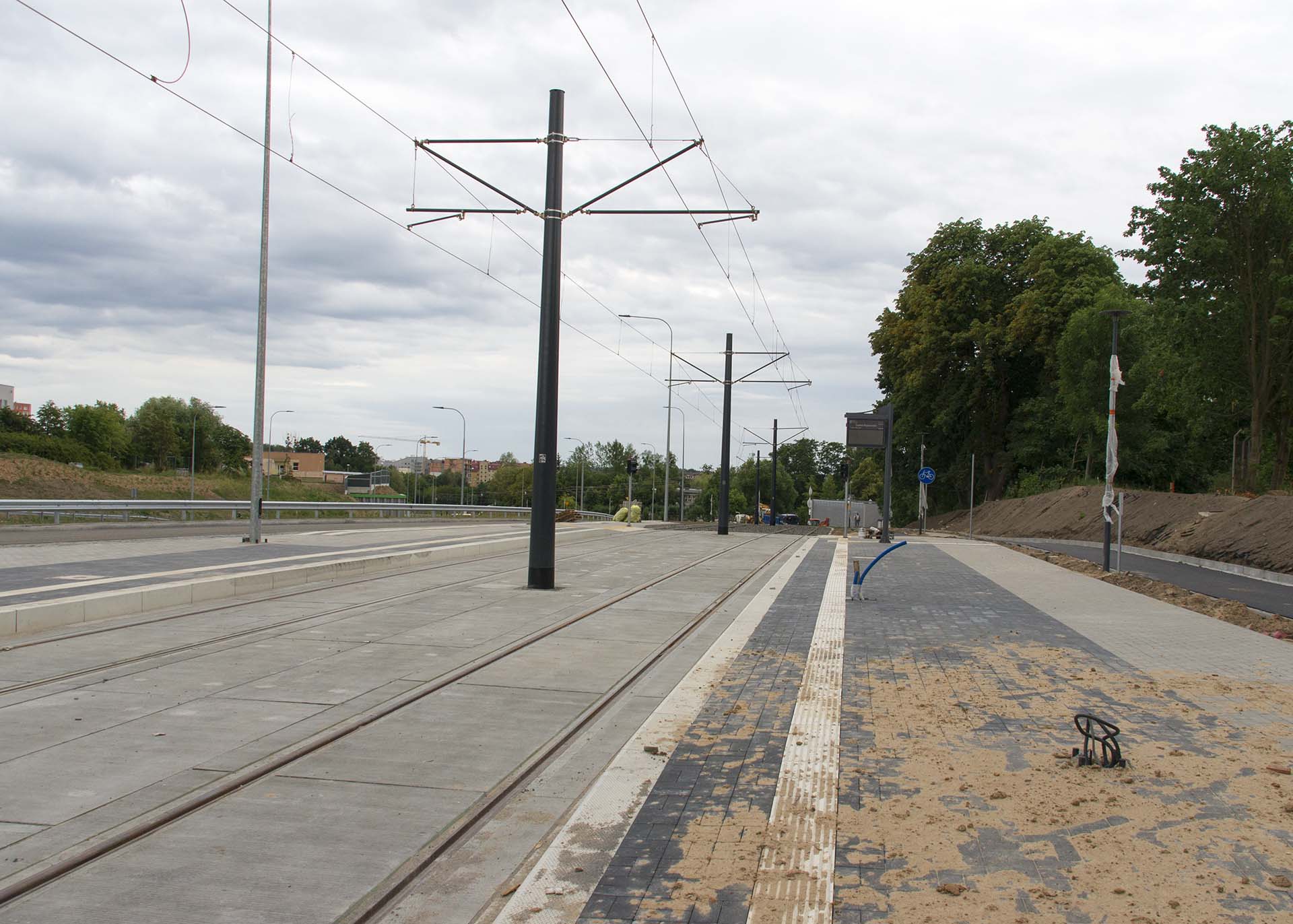 Budowa linii tramwajowej przy ulicy Obiegowej (12 lipca 2015) – przystanek Szpital Wojewódzki Fot. Paweł Bukowski