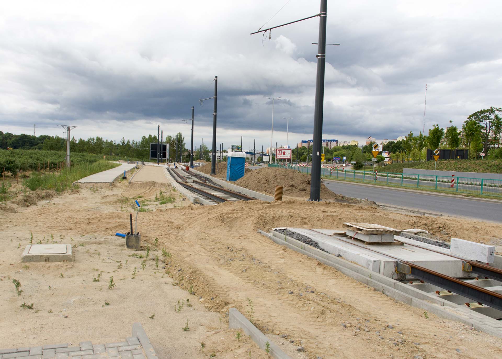 Budowa linii tramwajowej przy ulicy Tuwima (12 lipca 2015)