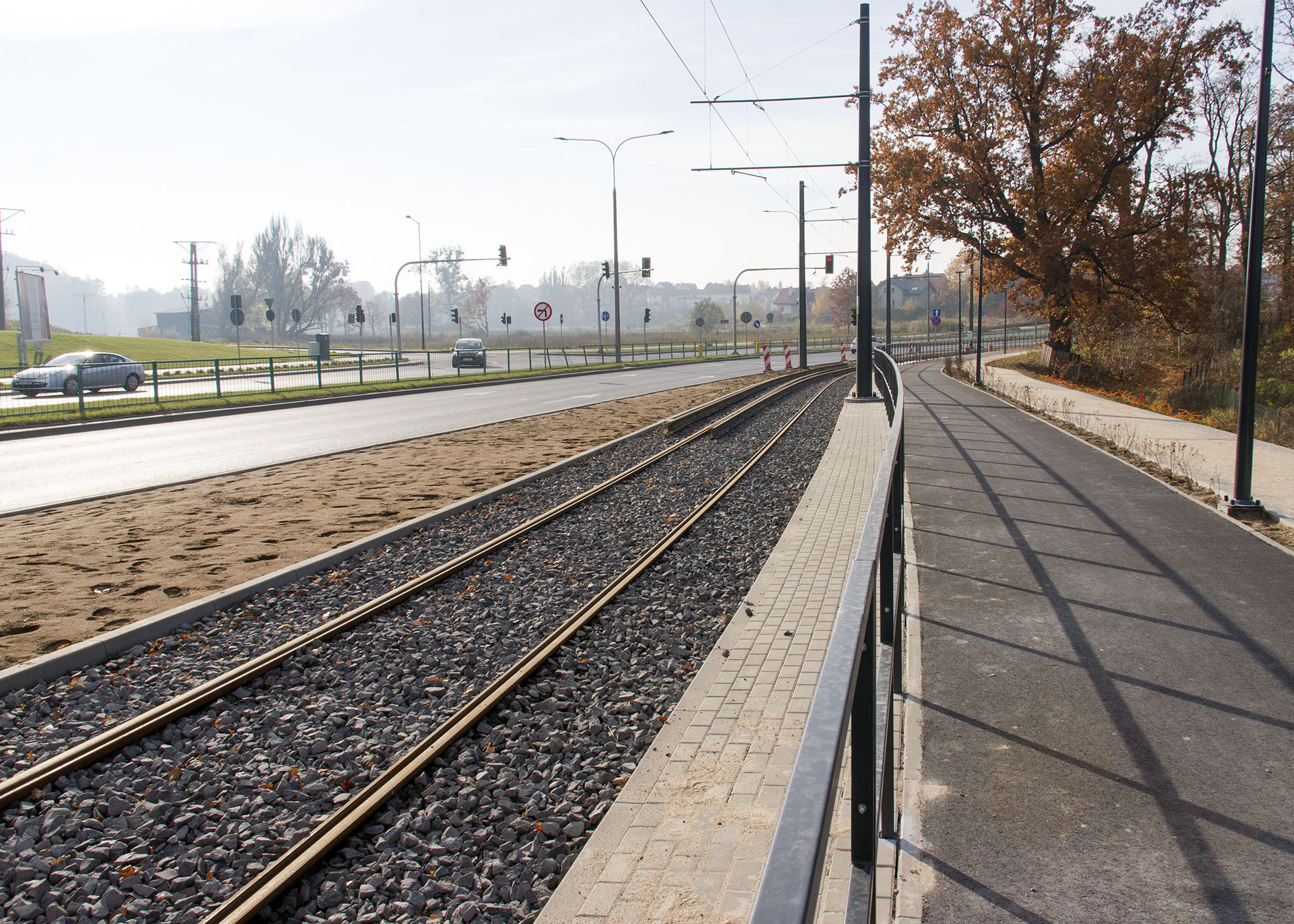 Linia tramwajowa przy ulicy Tuwima (31 października 2015)