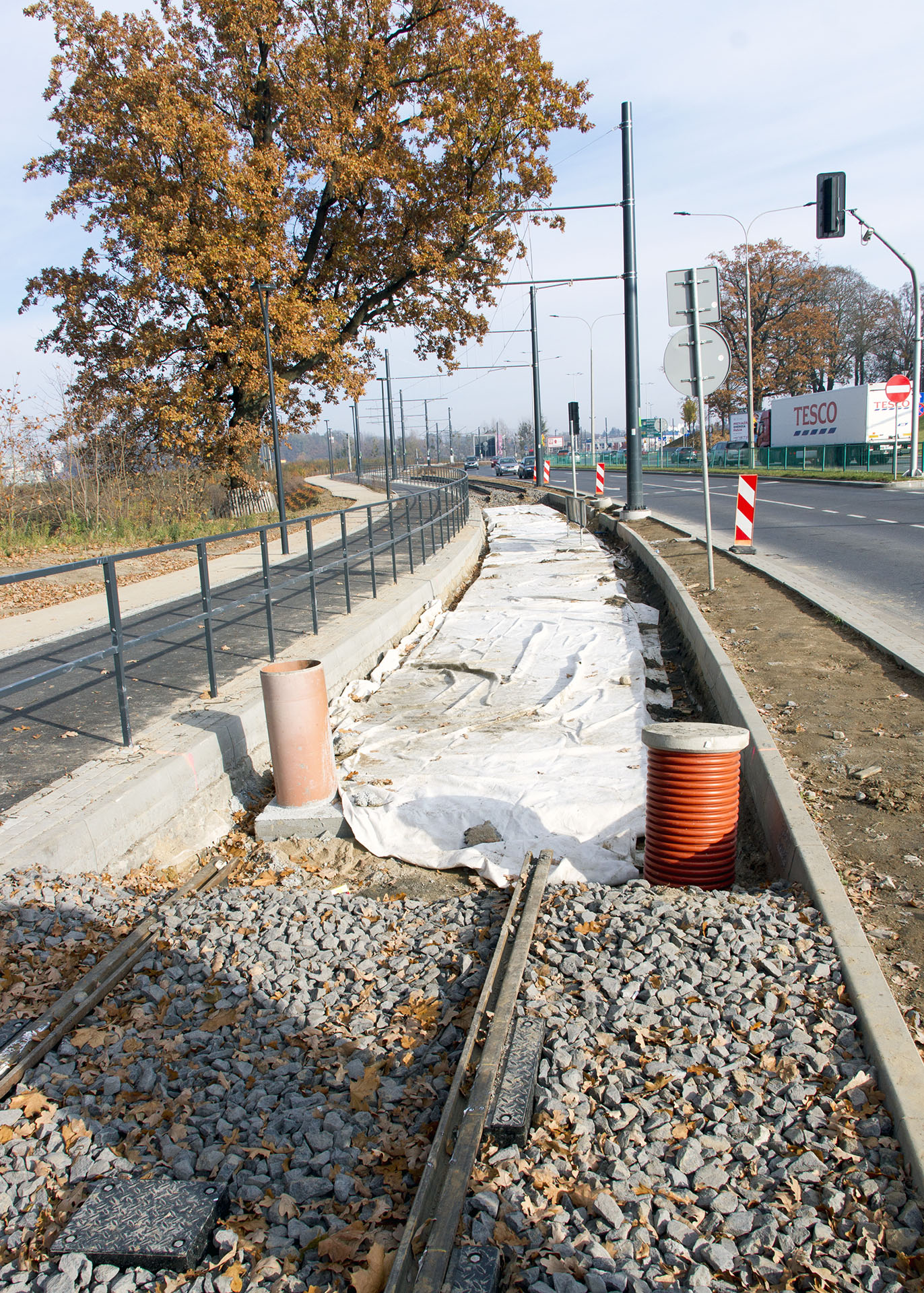 Linia tramwajowa przy ulicy Tuwima (31 października 2015)