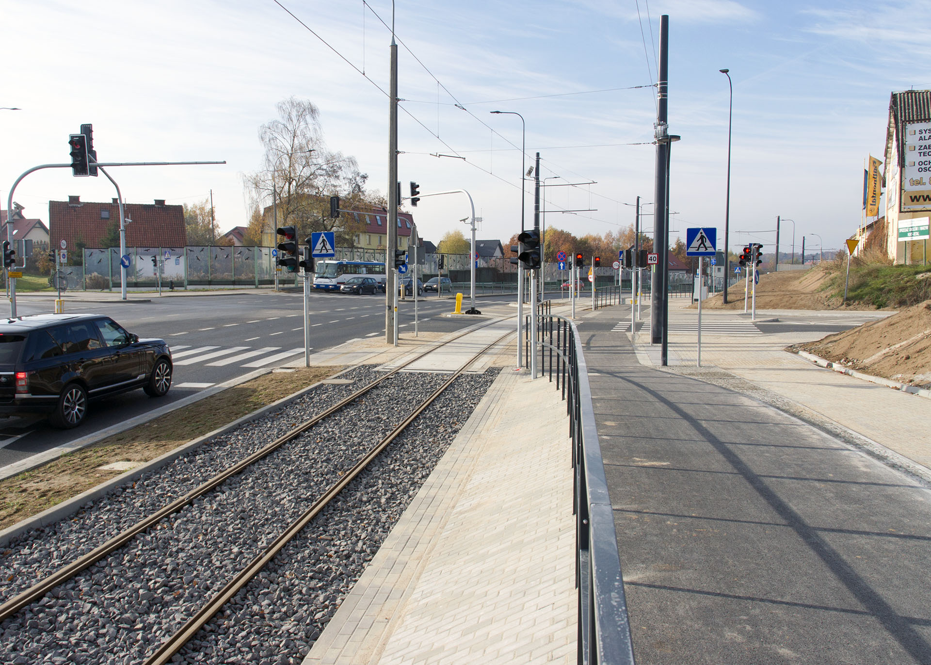 Linia tramwajowa przy ulicy Tuwima (31 października 2015) – skrzyżowanie z ulicą Nowaka