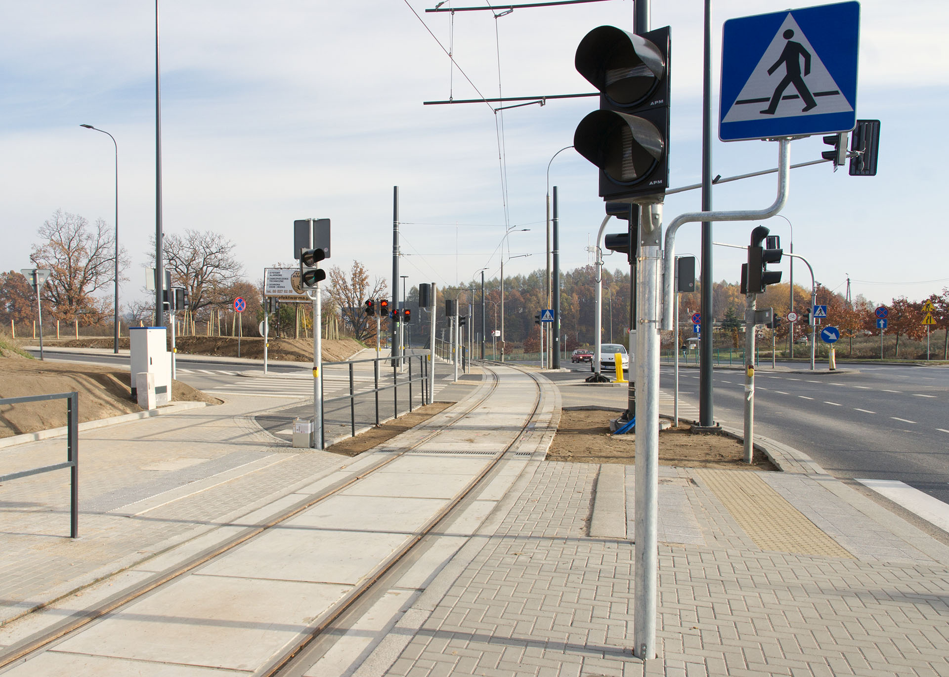 Linia tramwajowa przy ulicy Tuwima (31 października 2015) – skrzyżowanie z ulicą Nowaka