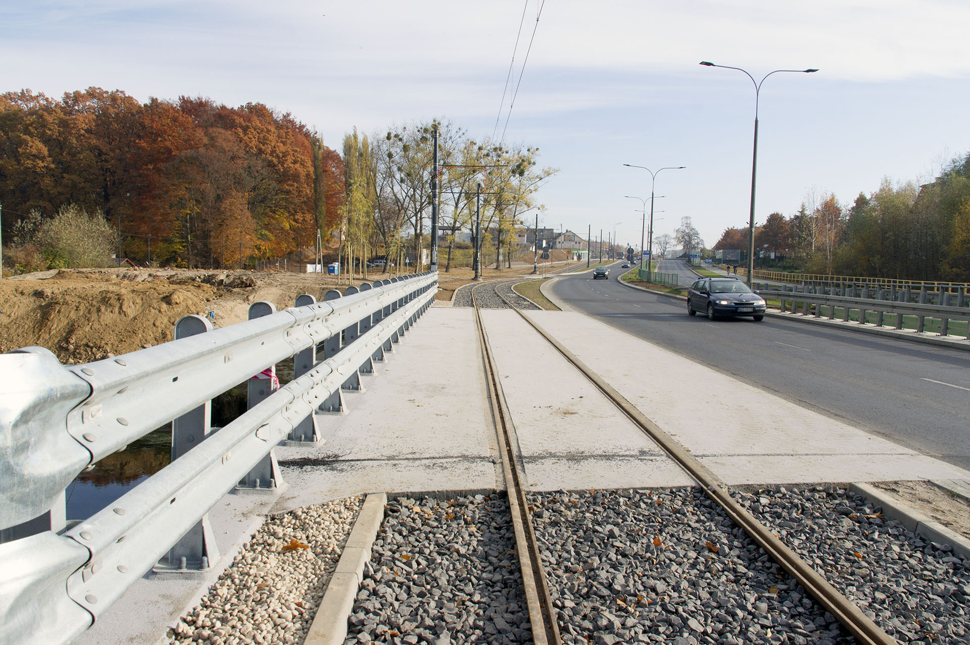 Linia tramwajowa przy ulicy Tuwima (31 października 2015) – most nad Łyną