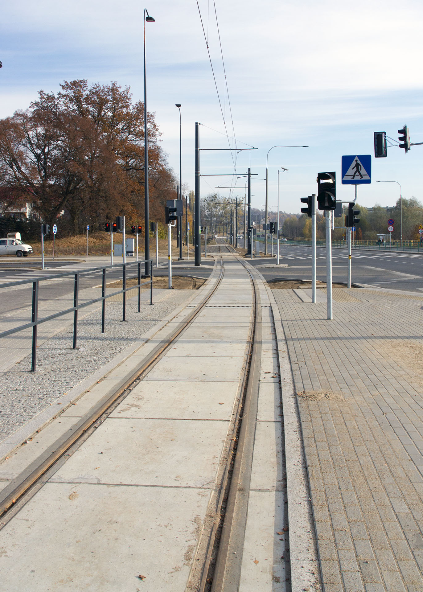 Linia tramwajowa przy ulicy Tuwima (31 października 2015) – skrzyżowanie z ulicą Iwaszkiewicza