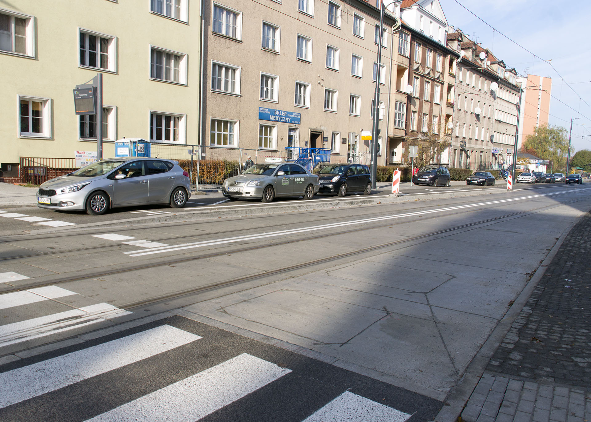 Linia tramwajowa w ulicy Kościuszki (31 października 2015) – przystanek wiedeński Kętrzyńskiego w kierunku Śródmieścia
