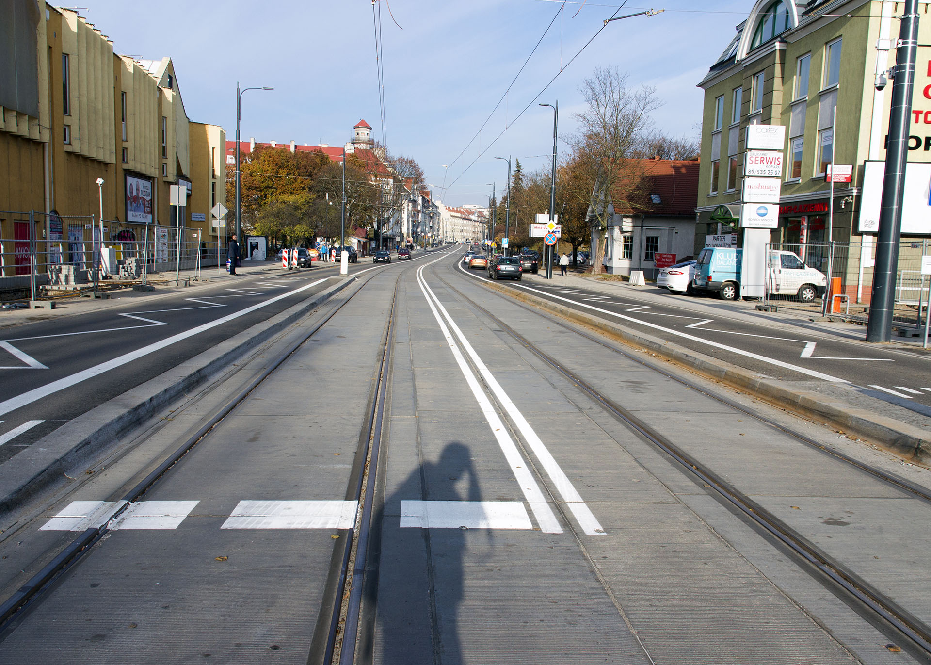Linia tramwajowa w ulicy Kościuszki (31 października 2015) – przystanek wiedeński Filharmonia