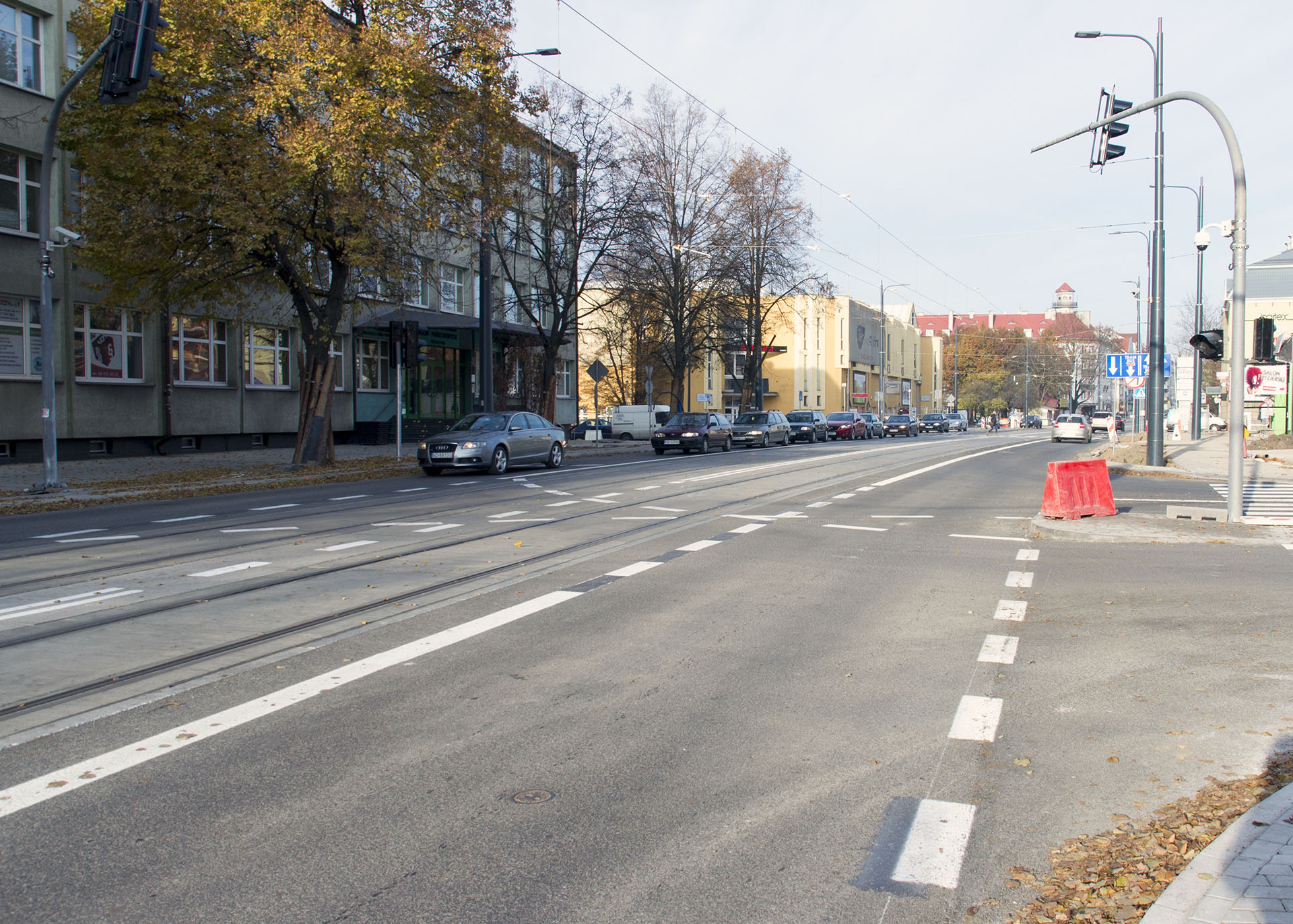 Linia tramwajowa w ulicy Kościuszki (31 października 2015) – skrzyżowanie z ulicą Kołobrzeską