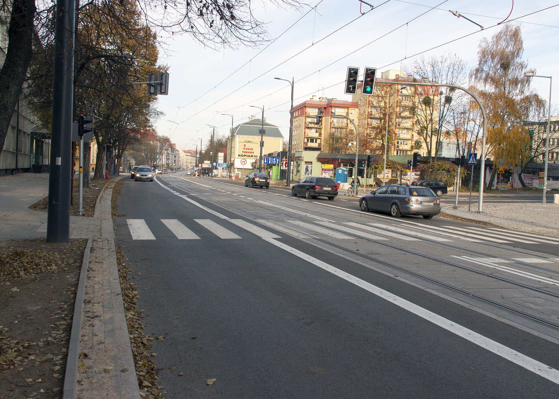 Linia tramwajowa w ulicy Kościuszki (31 października 2015) – skrzyżowanie z ulicą Kołobrzeską