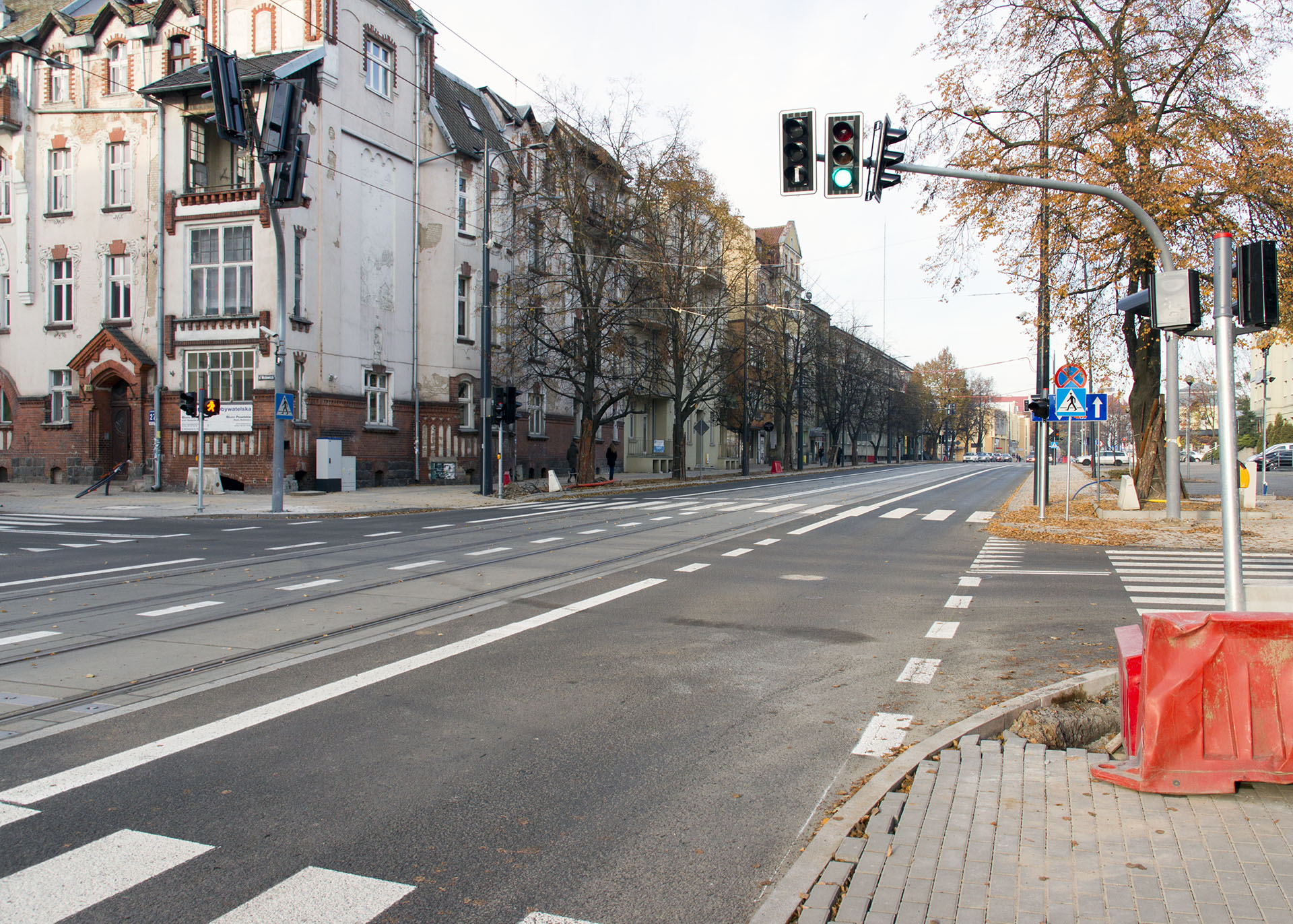 Linia tramwajowa w ulicy Kościuszki (31 października 2015) – skrzyżowanie z ulicą Mickiewicza