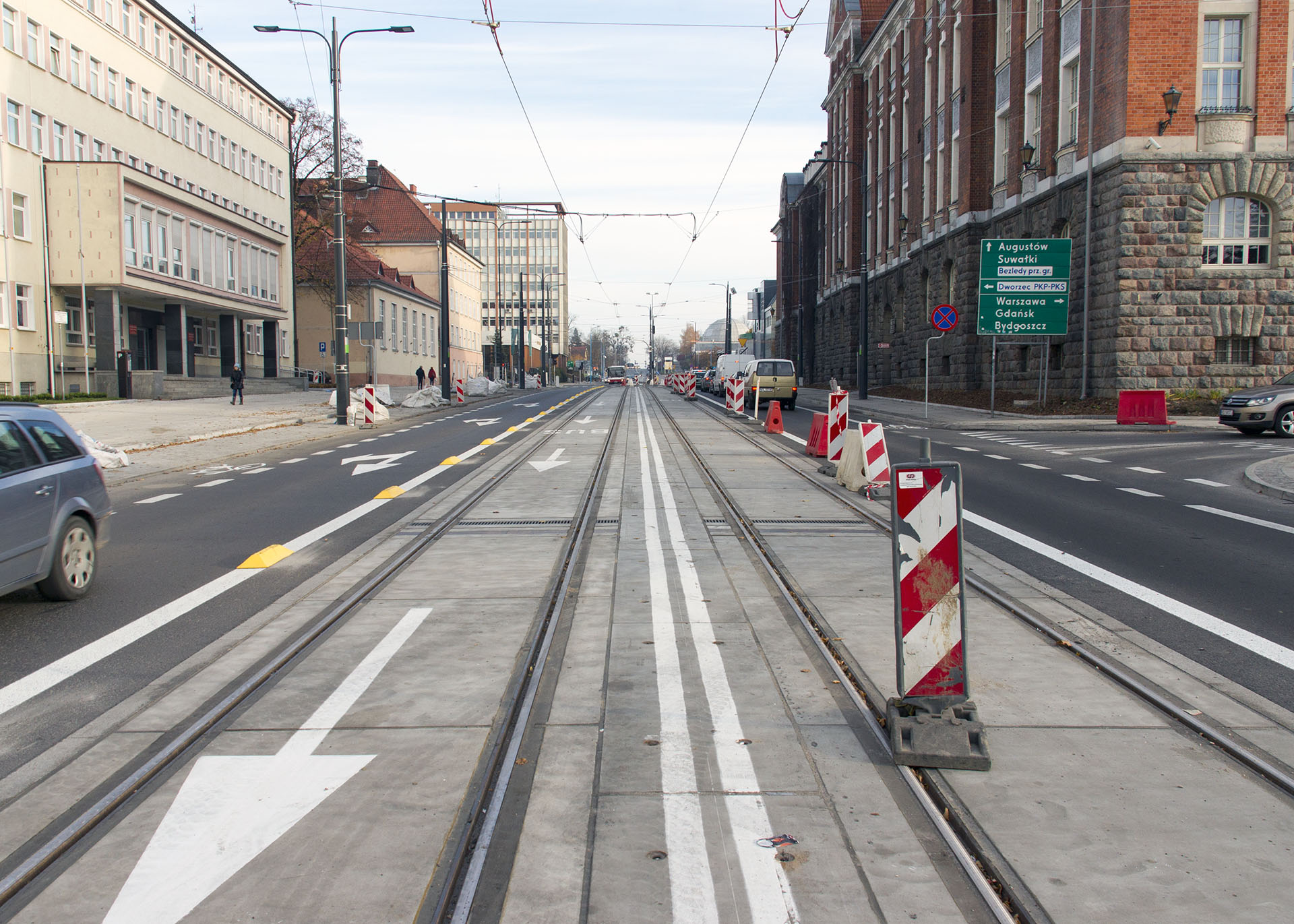 Linia tramwajowa w alei Piłsudskiego (31 października 2015) – skrzyżowanie z ulicą Plater
