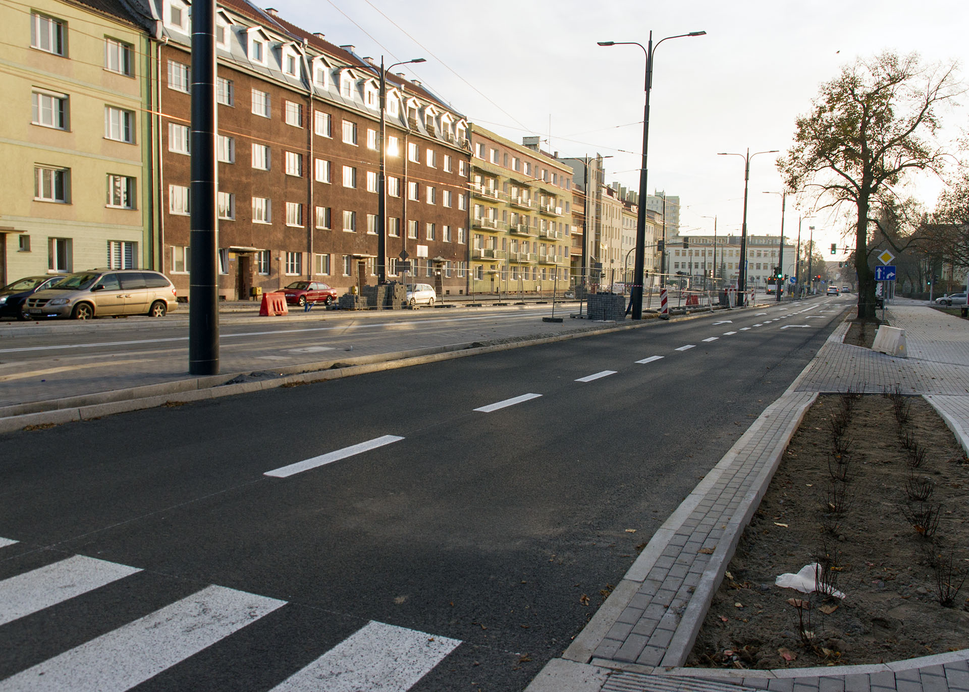 Linia tramwajowa w ulicy Kościuszki (31 października 2015) - przystanek Skwer Wakara