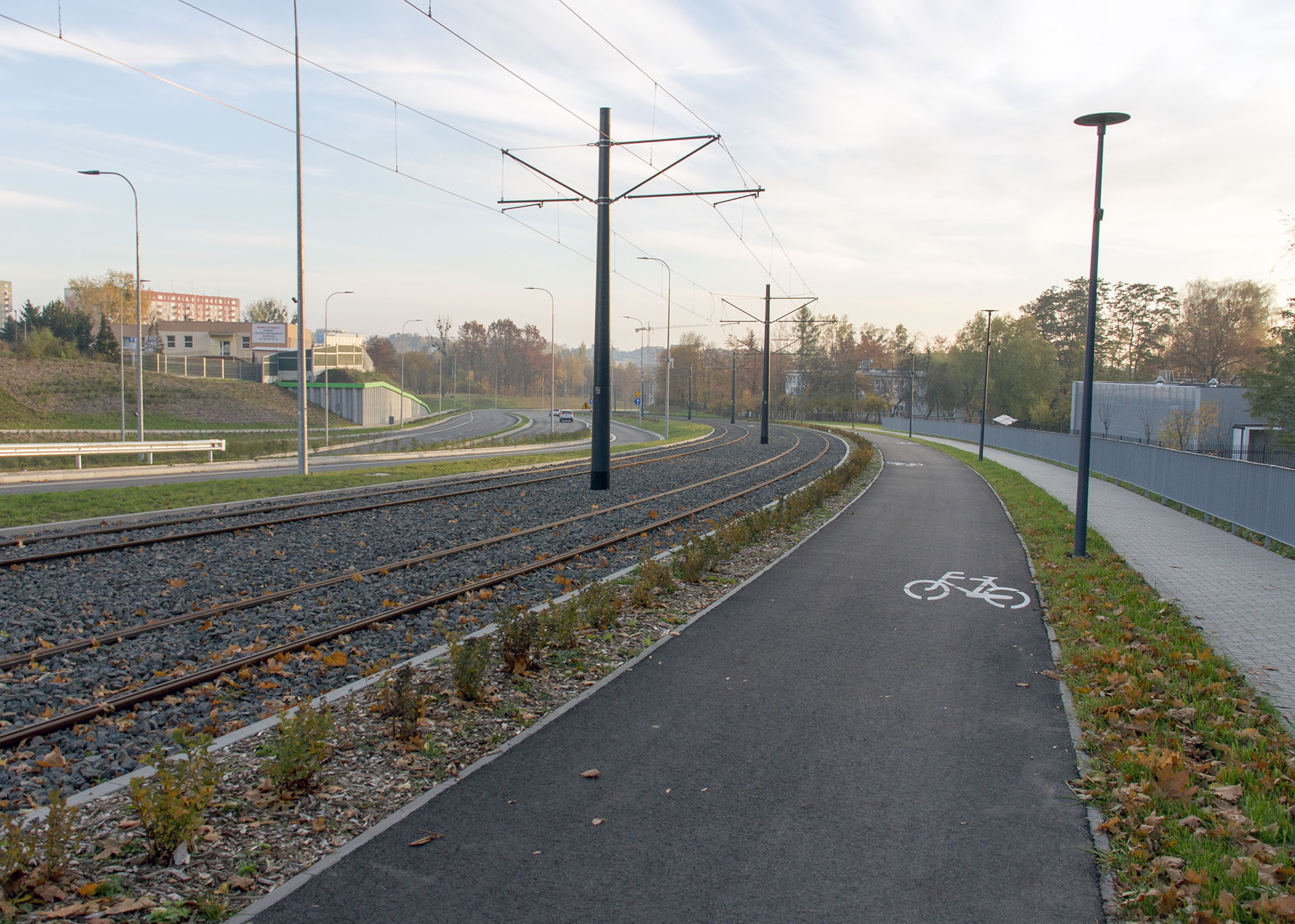 Linia tramwajowa przy ulicy Obiegowej (31 października 2015)