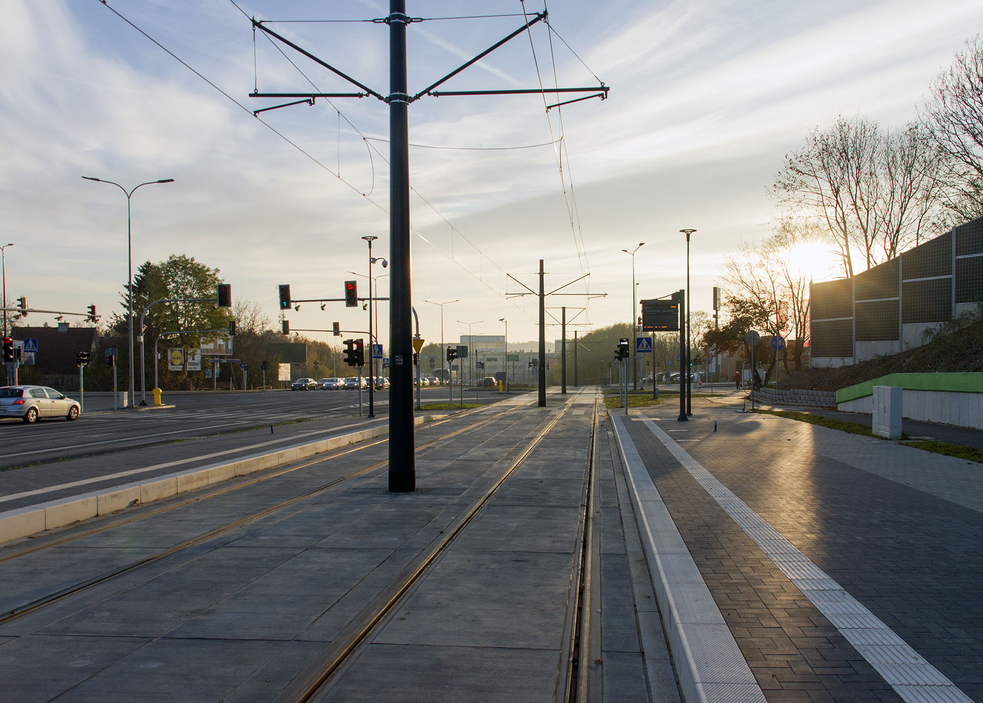 Linia tramwajowa przy ulicy Obiegowej (31 października 2015) – przystanek Obiegowa