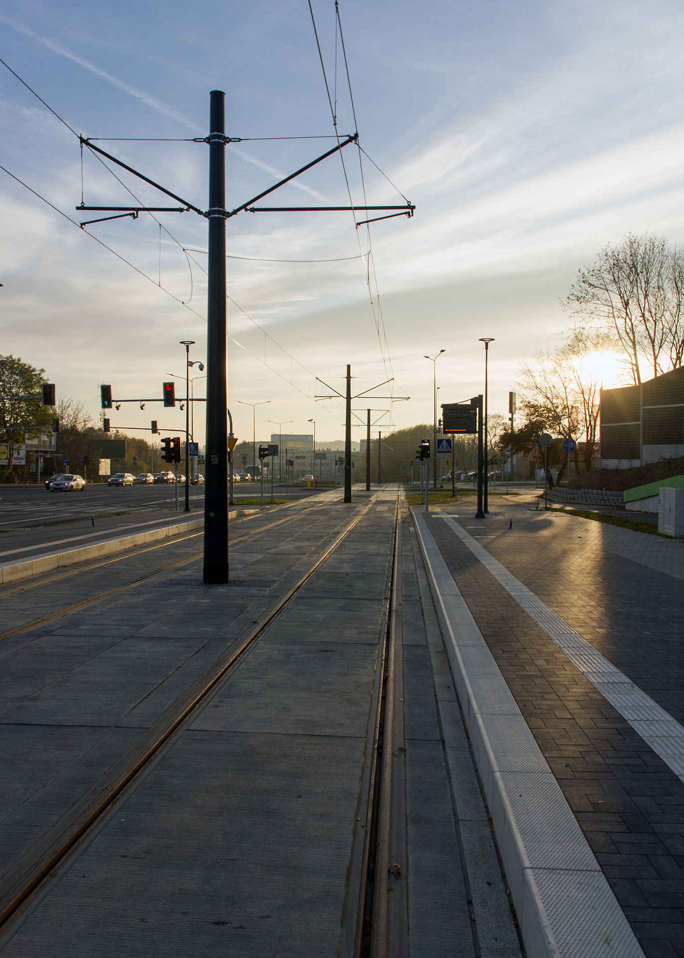Linia tramwajowa przy ulicy Obiegowej (31 października 2015) – przystanek Obiegowa