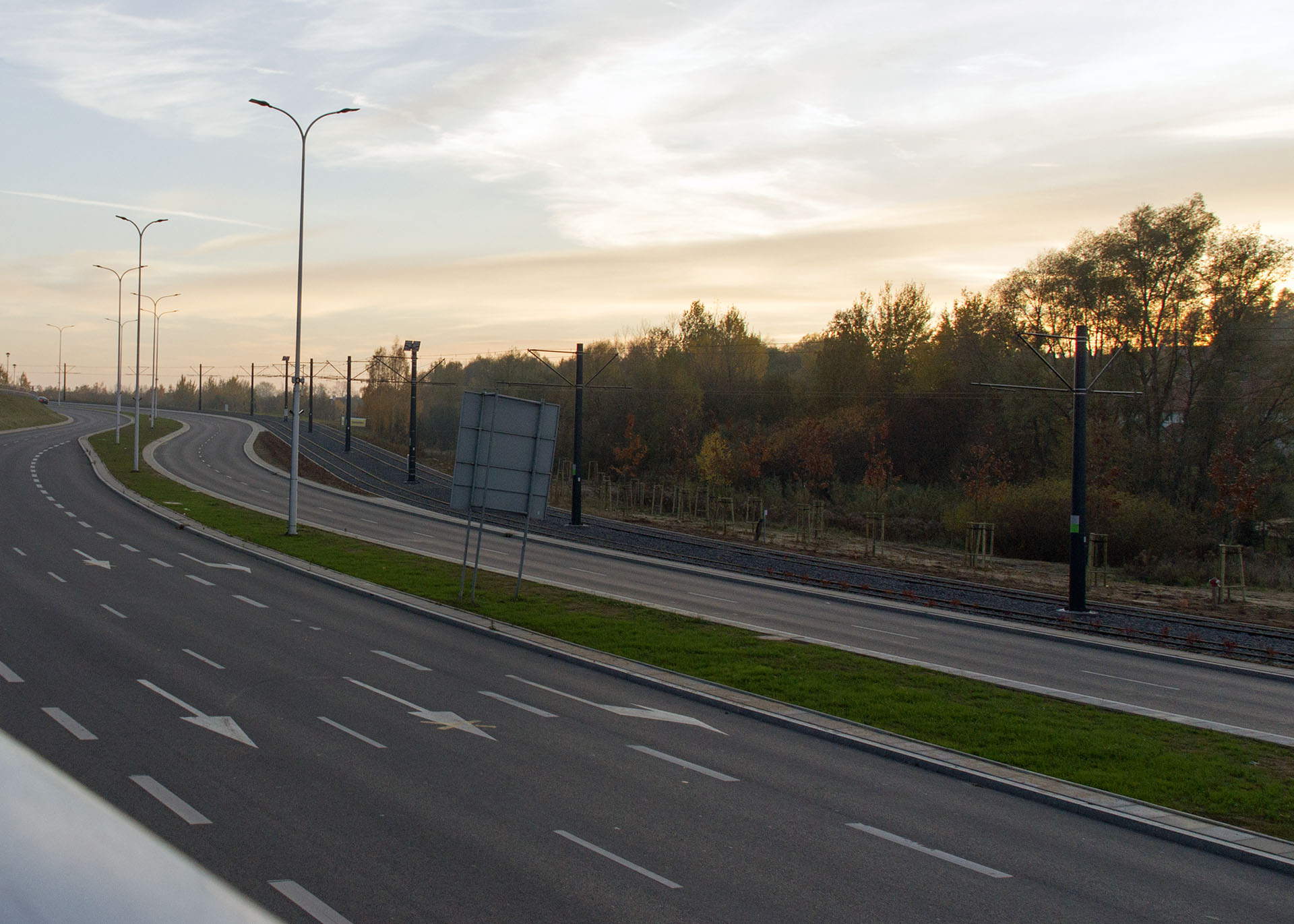 Linia tramwajowa przy ulicy Płoskiego (31 października 2015)