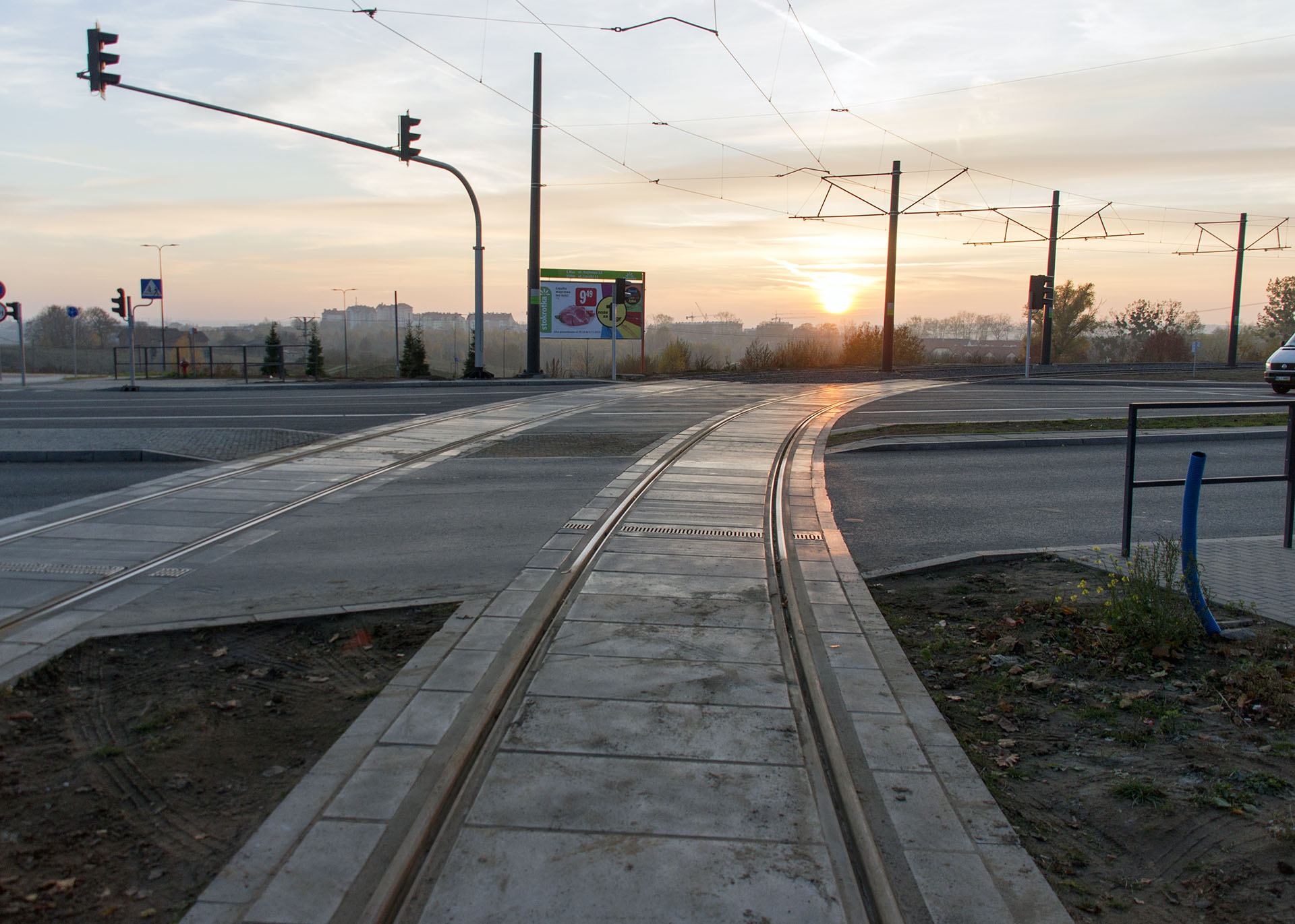 Linia tramwajowa przy ulicy Witosa (31 października 2015) – skrzyżowanie z ulicą Płoskiego