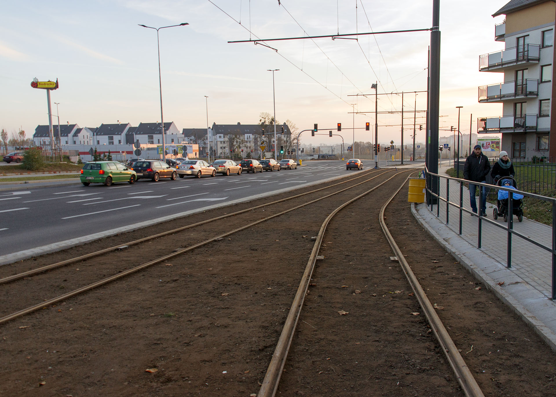Linia tramwajowa przy ulicy Witosa (31 października 2015)