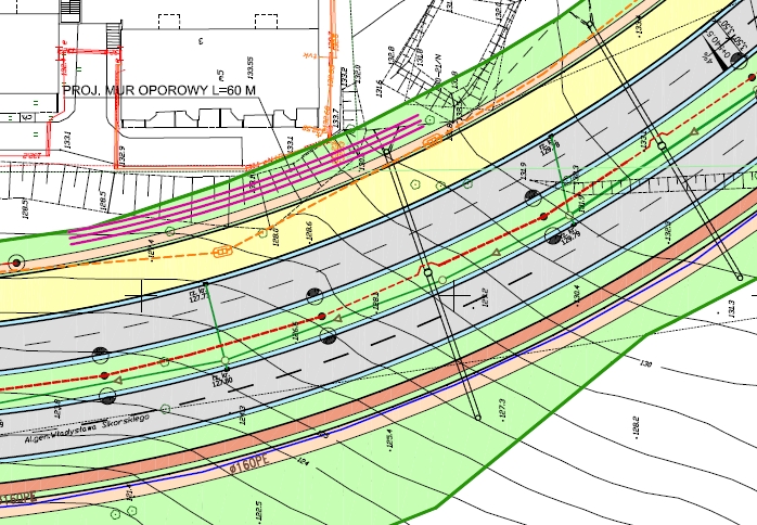 Na odcinku, gdzie torowisko buduje Torpol, rozpoczęto prace na ulicy Kościuszki. Obecnie trwają one tam między Dworcem Głównym a aleją Piłsudskiego. Prace ziemne są w różnym stopniu zaawansowane: najbardziej między placem Konstytucji 3 Maja a ulicą Kętrzyńskiego, gdzie rozpoczęły się najwcześniej – tam wymieniono już część instalacji podziemnych. Na placu Konstytucji 3 Maja, obok przyszłego przystanku końcowego przy Dworcu Głównym buduje się budynek socjalny dla motorniczych z punktem obsługi klienta. Na całej długości toru technicznego do zajezdni wzdłuż ulic Dworcowej i Towarowej nie leżą – z drobnym wyjątkiem – tory, ale za to na całym, ponadkilometrowym odcinku stoją już praktycznie wszystkie słupy trakcyjne. Jedyne fragmenty torowiska na tym odcinku to rozjazdy, które ułożono w miejscu wjazdu do zajezdni.