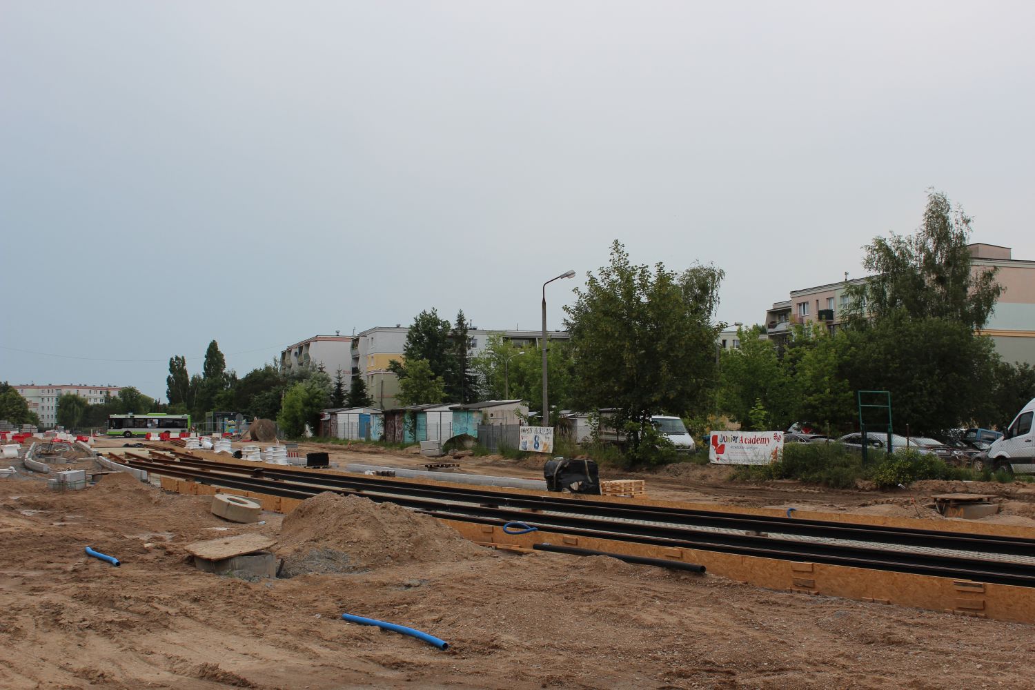 Budowa linii tramwajowej w ulicy Wilczyńskiego, w pobliżu skrzyżowania z ulicą Wachowskiego (1 lipca 2022) © OlsztyńskieTramwaje.pl