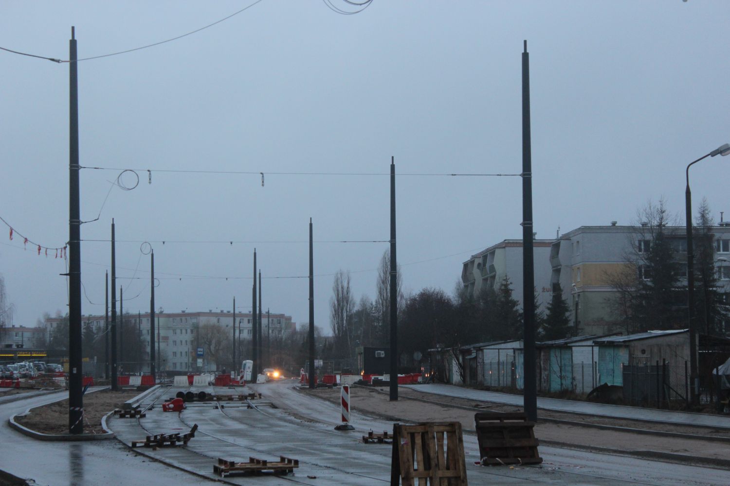 Budowa linii tramwajowej w ulicy Wilczyńskiego, między ulicami Gębika i Wachowskiego (15 stycznia 2023) © OlsztyńskieTramwaje.pl