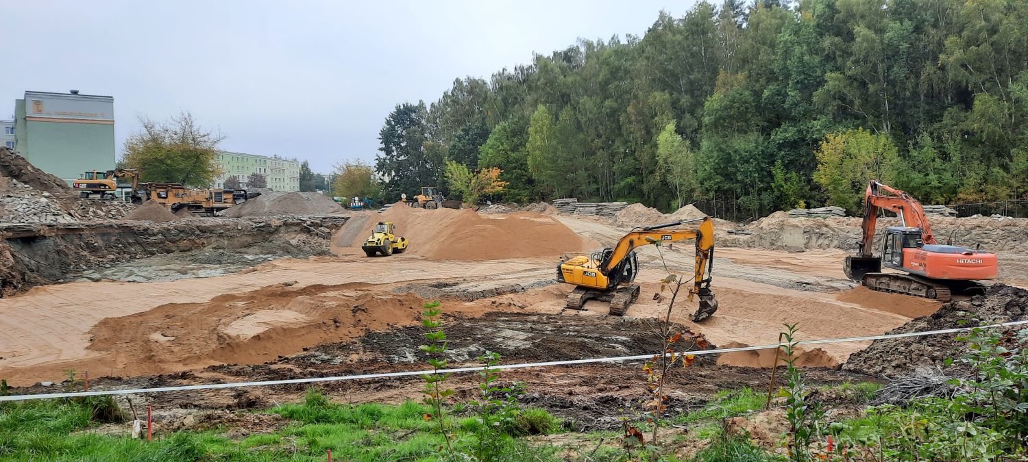 Budowa linii tramwajowej w ulicy Wilczyńskiego, w okolicach przyszłego przystanku końcowego Pieczewo (2 października 2021) © OlsztyńskieTramwaje.pl