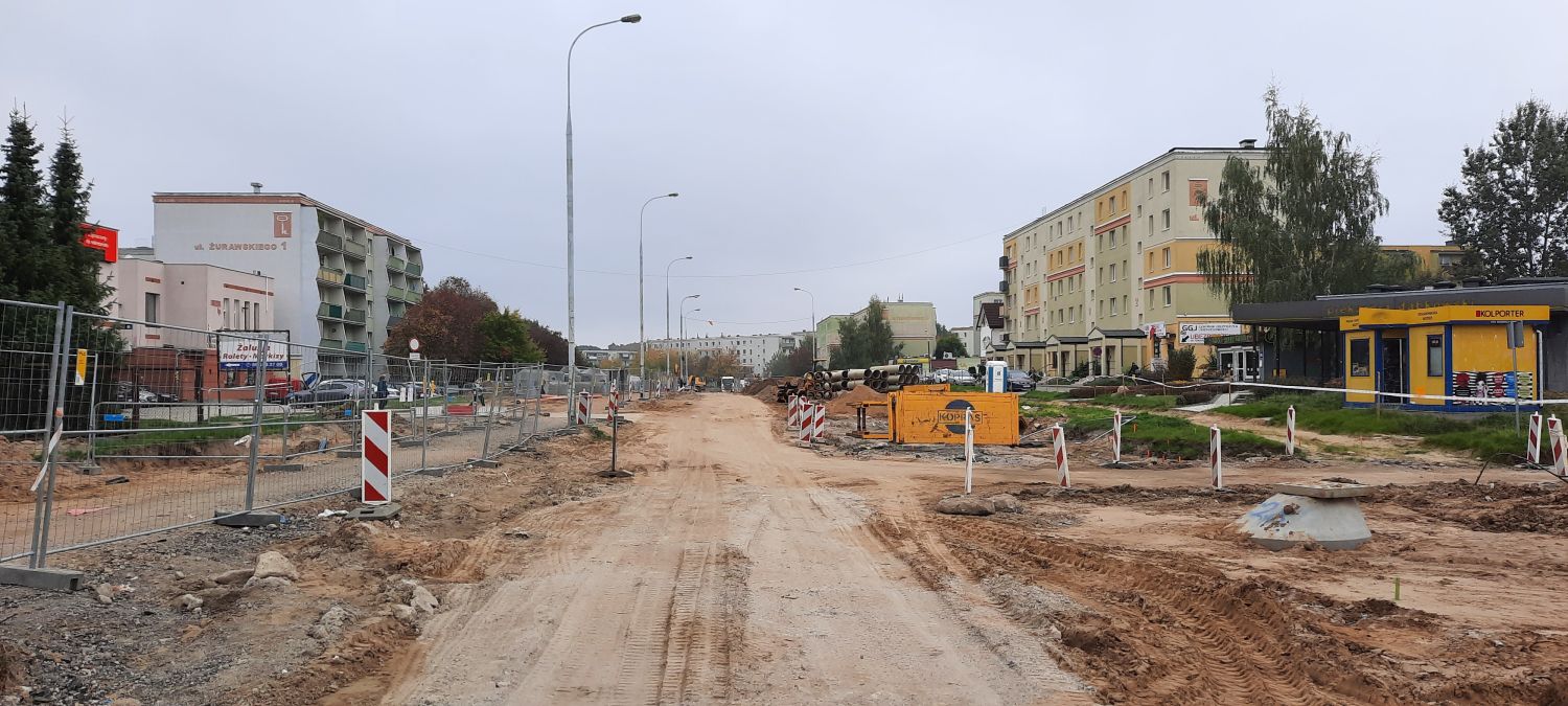 Budowa linii tramwajowej w ulicy Wilczyńskiego, w okolicach skrzyżowania z ulicą Panasa (2 października 2021) © OlsztyńskieTramwaje.pl