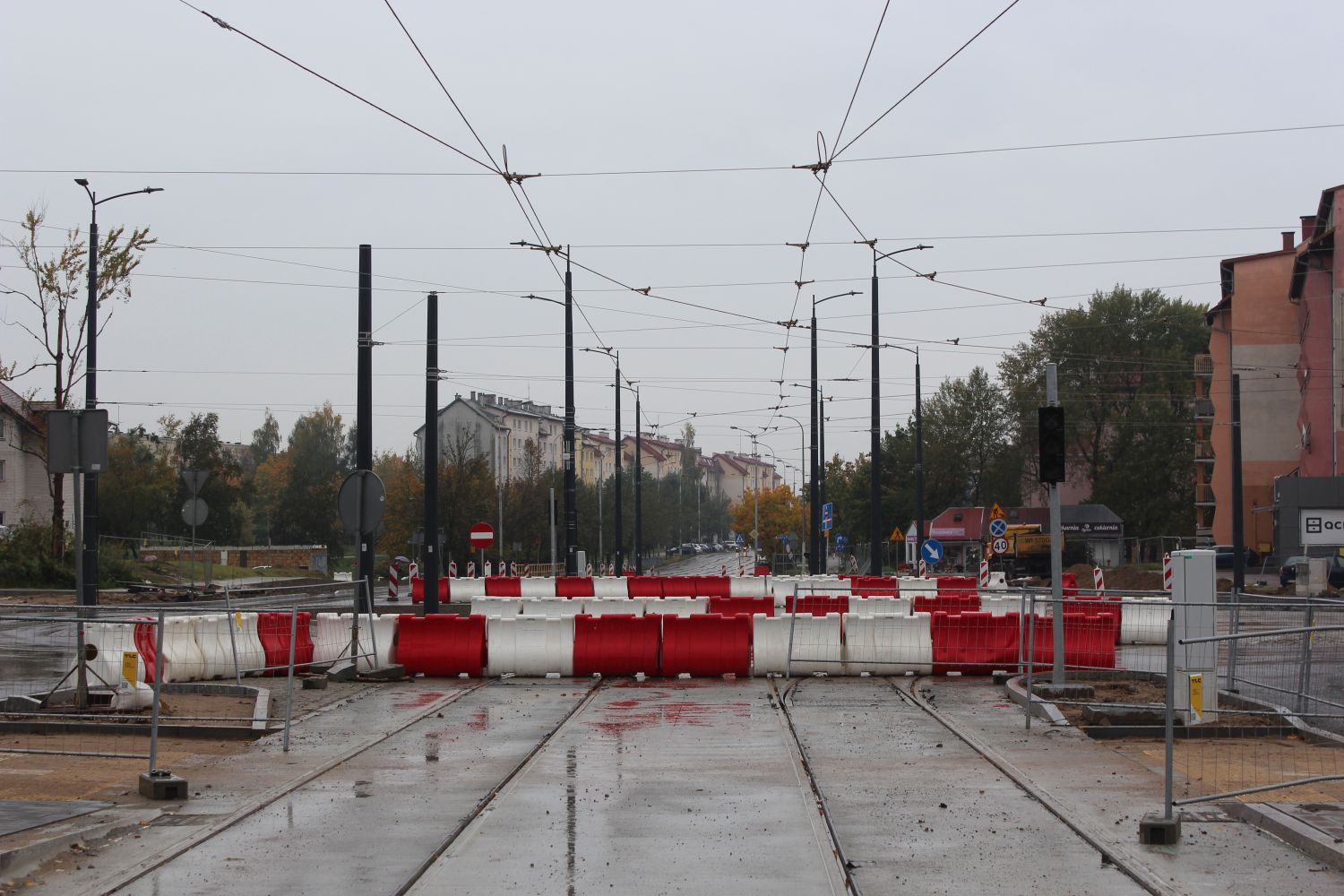 Budowa linii tramwajowej na skrzyżowaniu ulic Wilczyńskiego i Krasickiego (22 października 2023) © OlsztyńskieTramwaje.pl