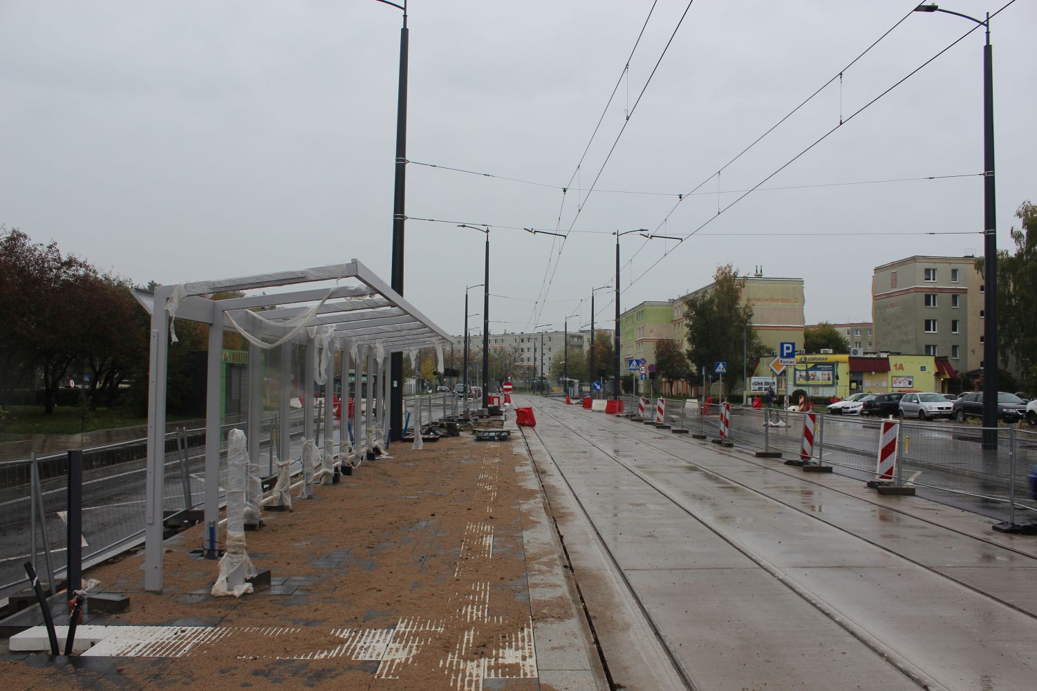 Budowa linii tramwajowej w ulicy Wilczyńskiego – przystanek Gębika (22 października 2023) © OlsztyńskieTramwaje.pl