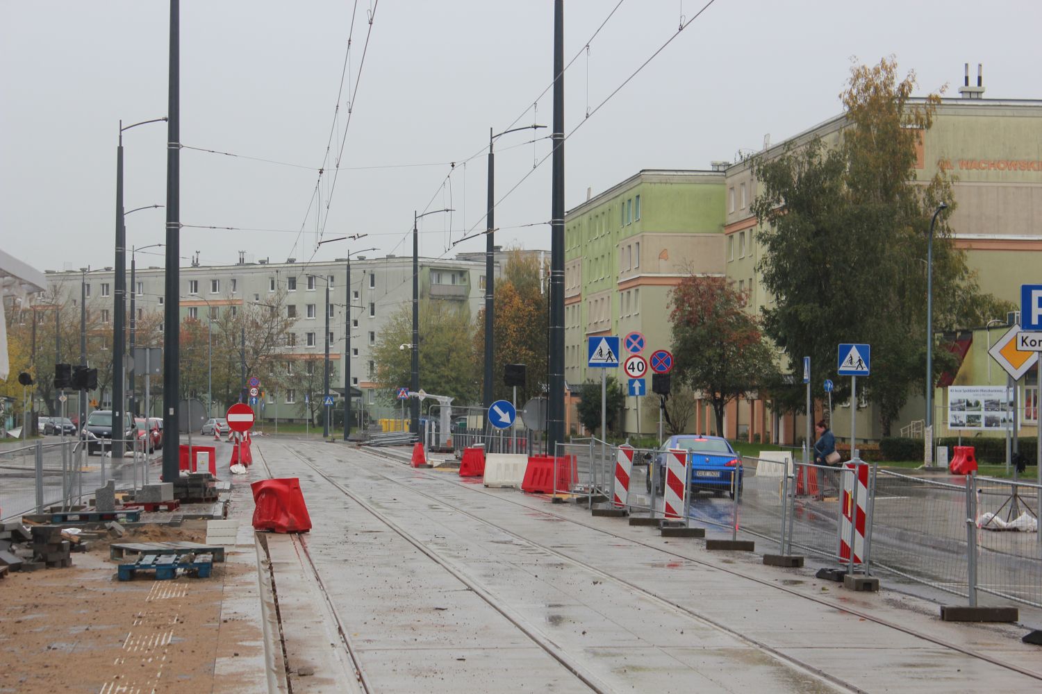 Budowa linii tramwajowej w ulicy Wilczyńskiego – przystanek Gębika (22 października 2023) © OlsztyńskieTramwaje.pl