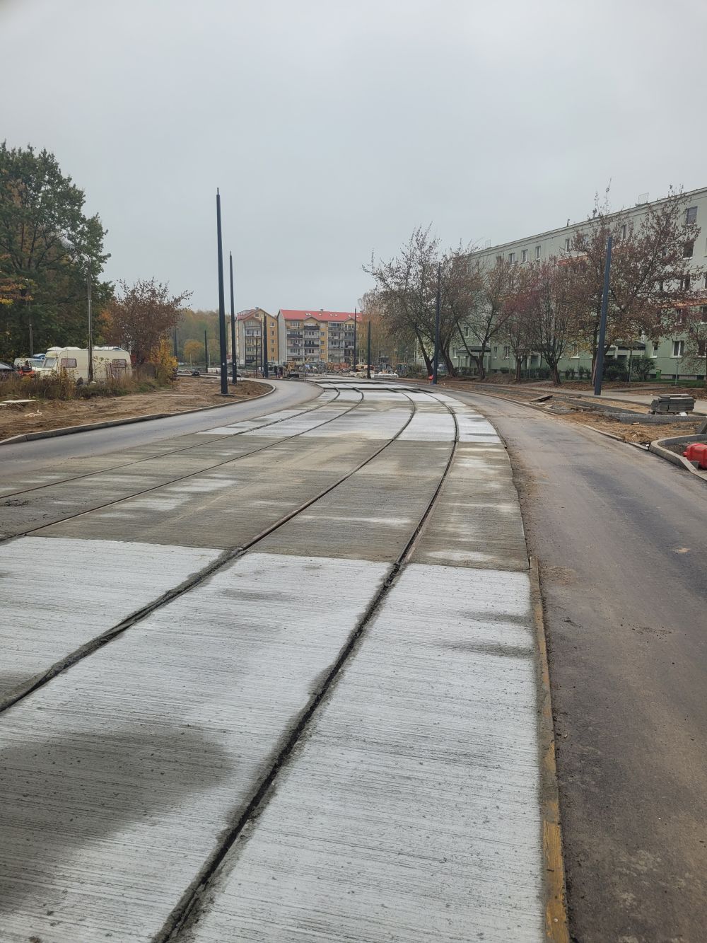 Budowa linii tramwajowej w ulicy Wilczyńskiego w pobliżu skrzyżowania z ulicą Wachowskiego (23 października 2022) © Przemysław Dryka