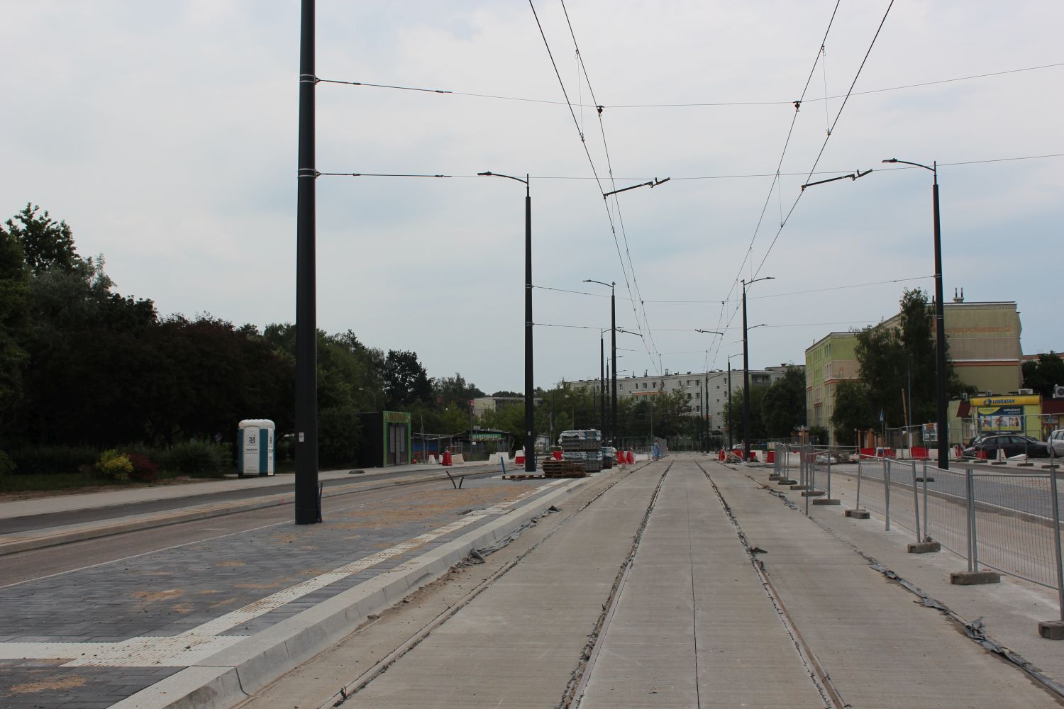 Budowa linii tramwajowej w ulicy Wilczyńskiego – przystanek Gębika (5 lipca 2023) © OlsztyńskieTramwaje.pl